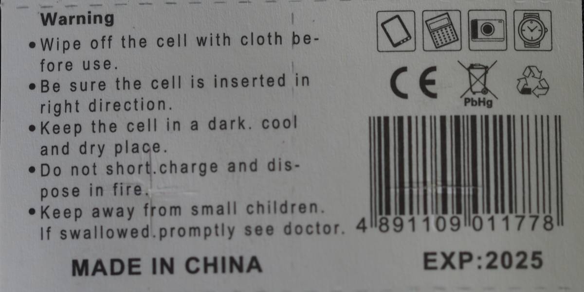 低価格帯の腕時計などに多く用いられているボタン電池です。