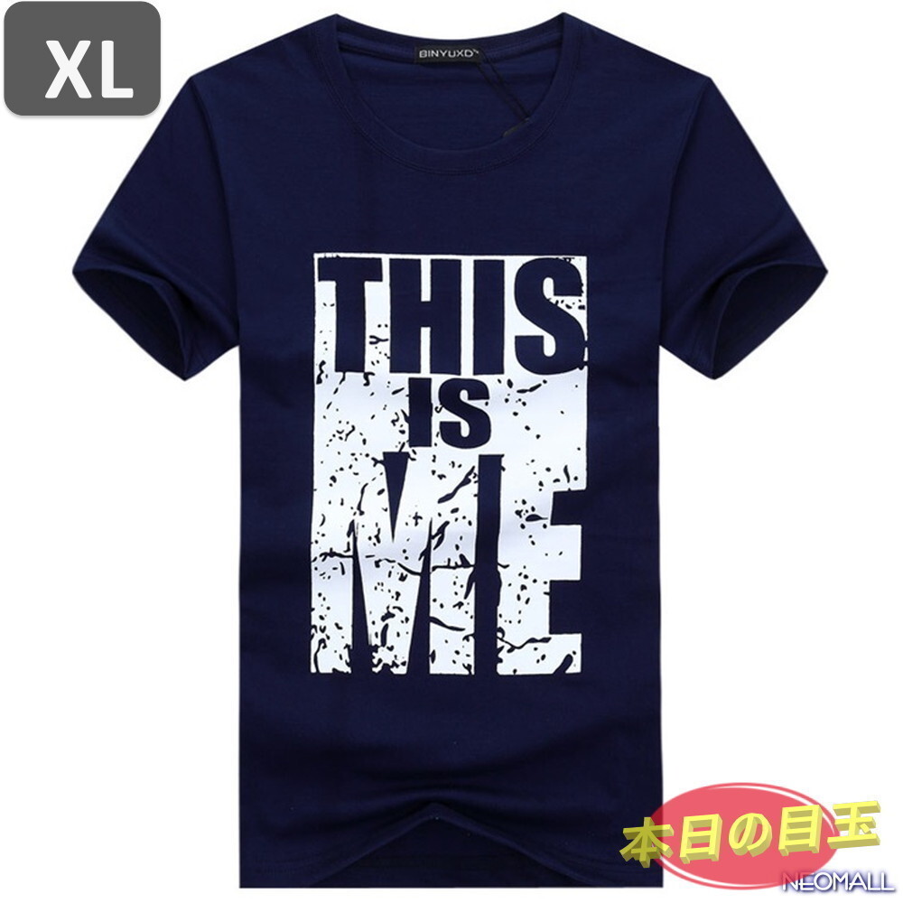 本日のお買得 ☆ 丸首 半袖 Tシャツ【464】 ネイビー XLサイズ トップス シャツ シンプル イラスト デザイン 春夏