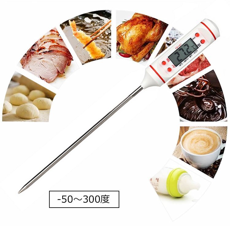 てんぷらや揚げ物の油、赤ちゃん用のミルク、またお肉などの火の通り加減、コーヒーなどの温度計測におすすめです。