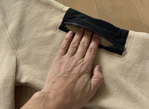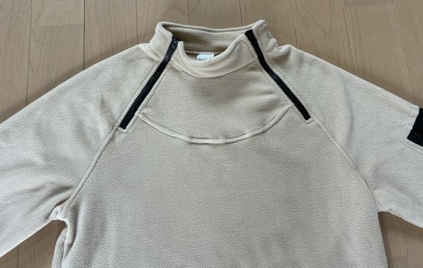 首元の両サイドが開くミッドレイヤーです。