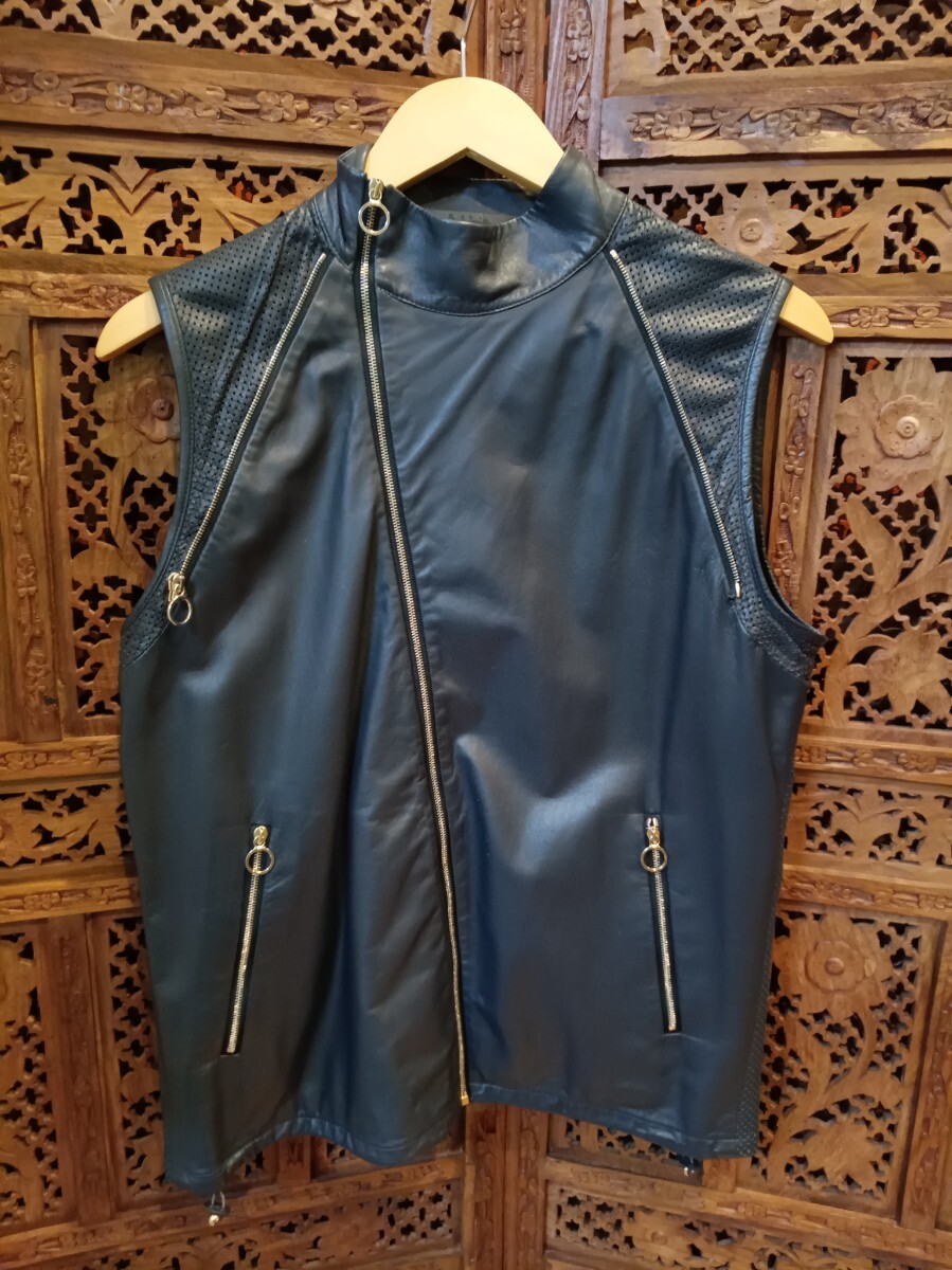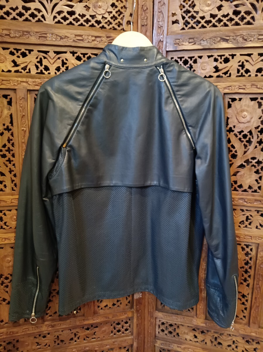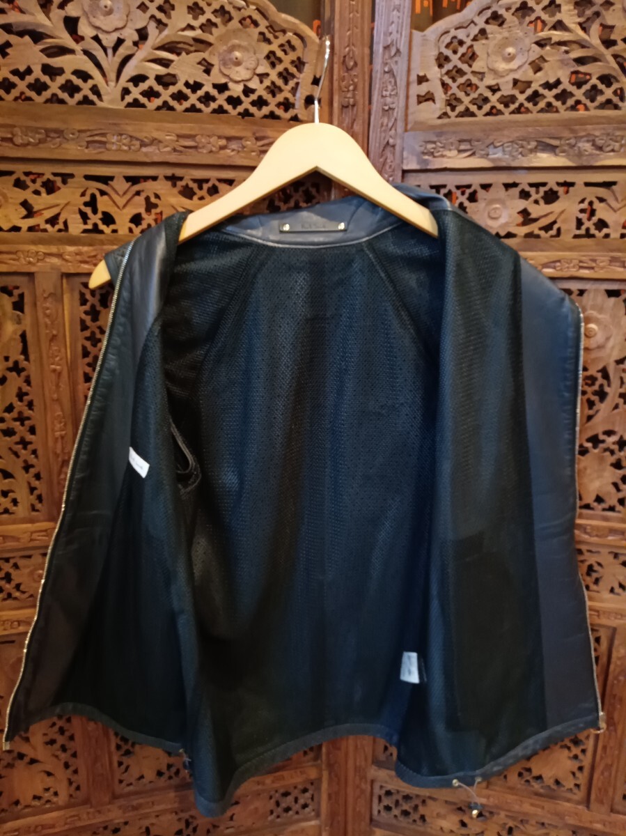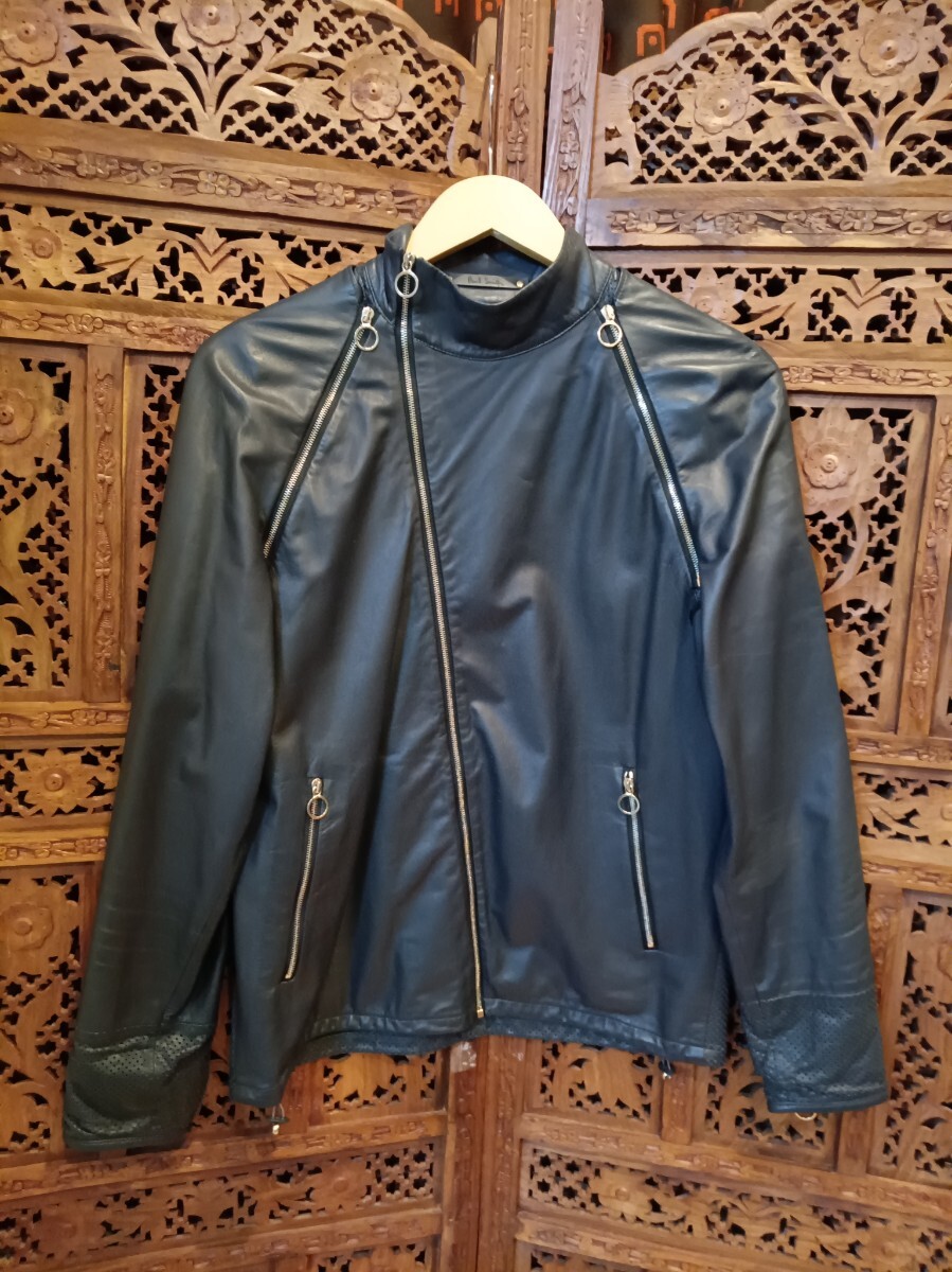 QYB PaulSmith メッシュデザイン 羊革 2WAY ライダースジャケット ベスト ブラック ポールスミス レザージャケット 古着 size:L