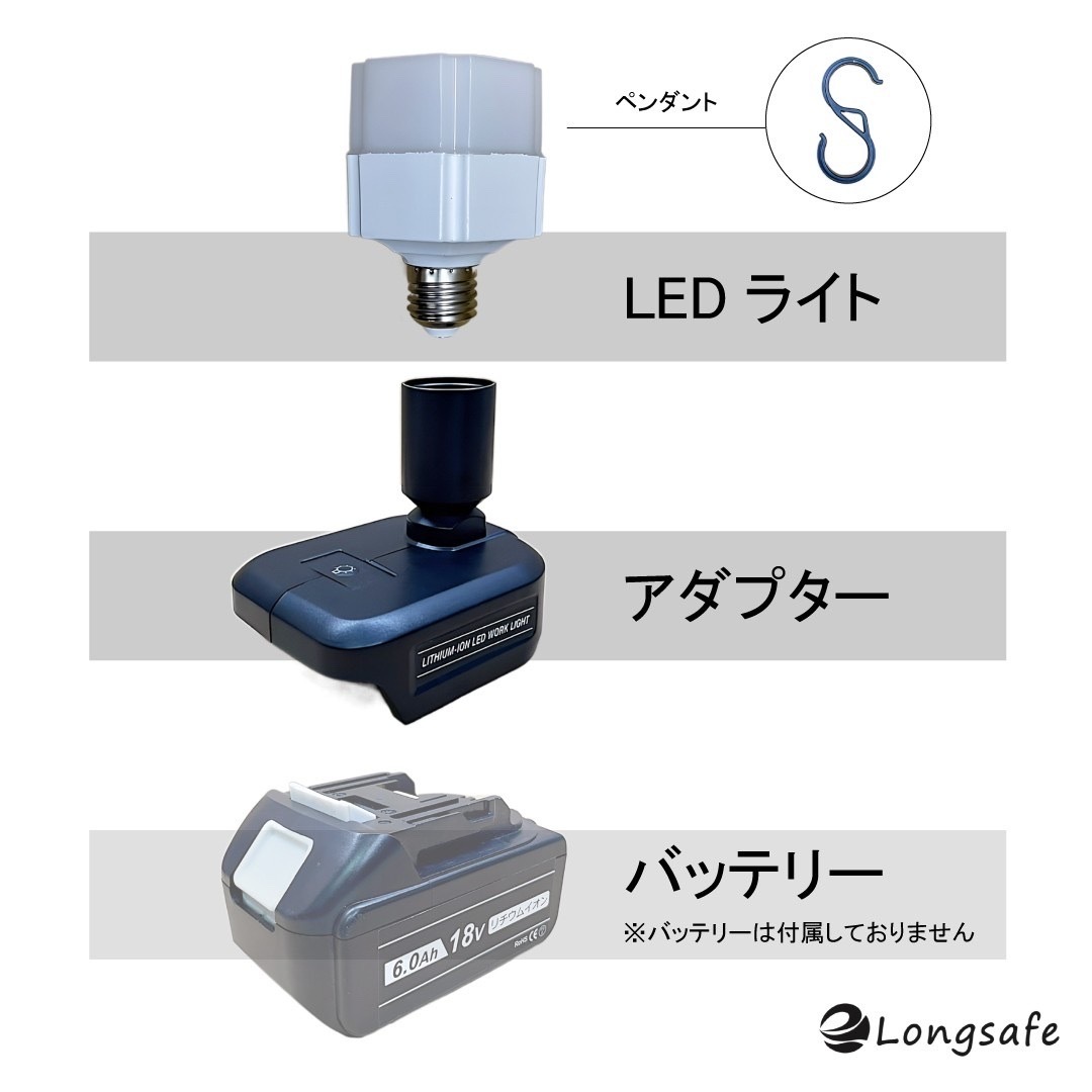 14.4V-18V リチウムイオンバッテリー対応LED、1200LMの超高輝度ライトで360度周囲を照らします。