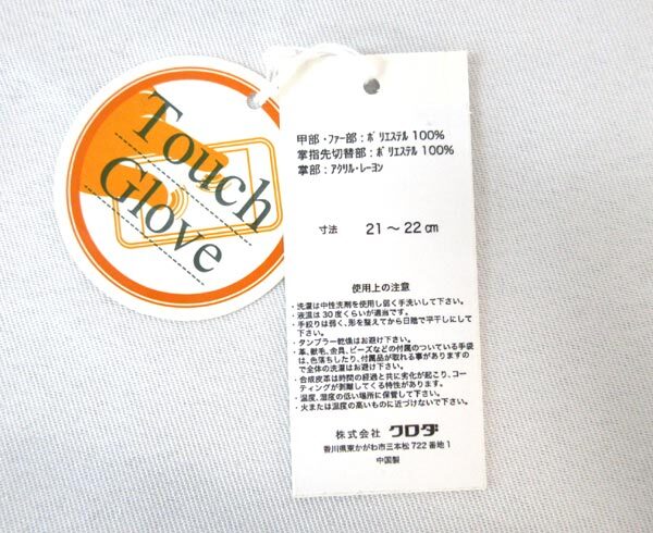 | 内 容 | ■レディース クロダ タッチパネル対応手袋 ■サイズ:手囲い21-22cm 全長約25cm ■素材:掌部/アクリル、レーヨン 他/ポリエステル100% ■カラー:ベージュ |