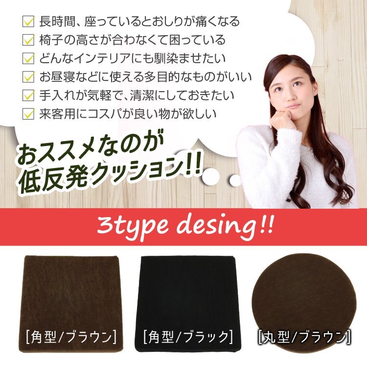 【未使用 角型ブラウン】座布団 クッション 低反発 高反発 2層構造 ウレタン 椅子 テレワーク