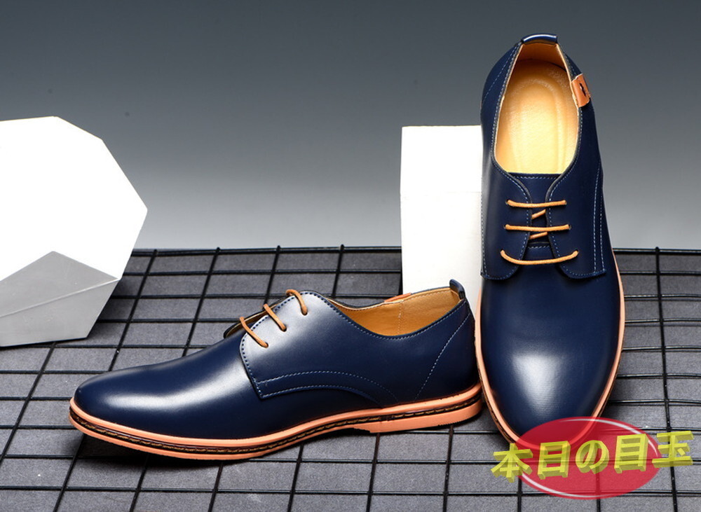 1円~ ☆ メンズ ビジネス レザー シューズ ネイビー サイズ 25.0cm 革靴 靴 カジュアル 屈曲性 通勤 軽量 仕事 【610】