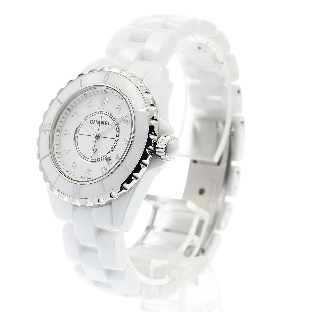 訳あり シャネル CHANEL H1628 J12 白セラミック 12Pダイヤ クォーツ レディース _920532