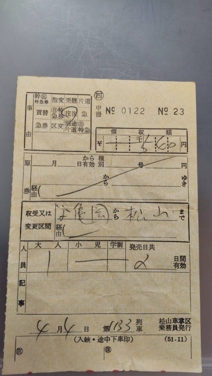 NOD12  ■一種車内券・四国編・第2弾■ 【 松山車掌区④(51.11) 領収額枠 5→6桁に 】