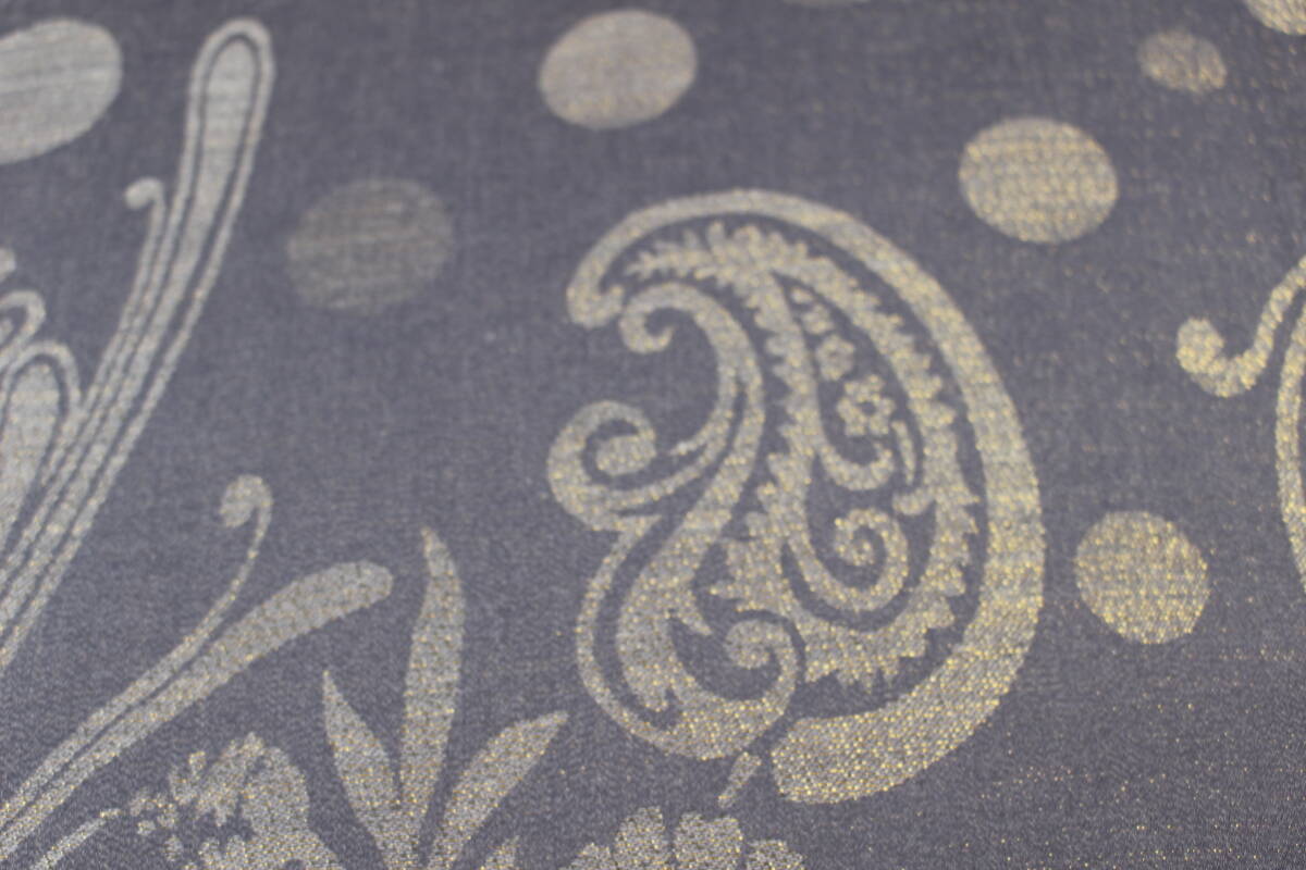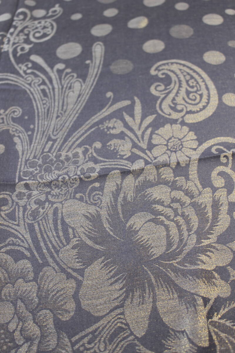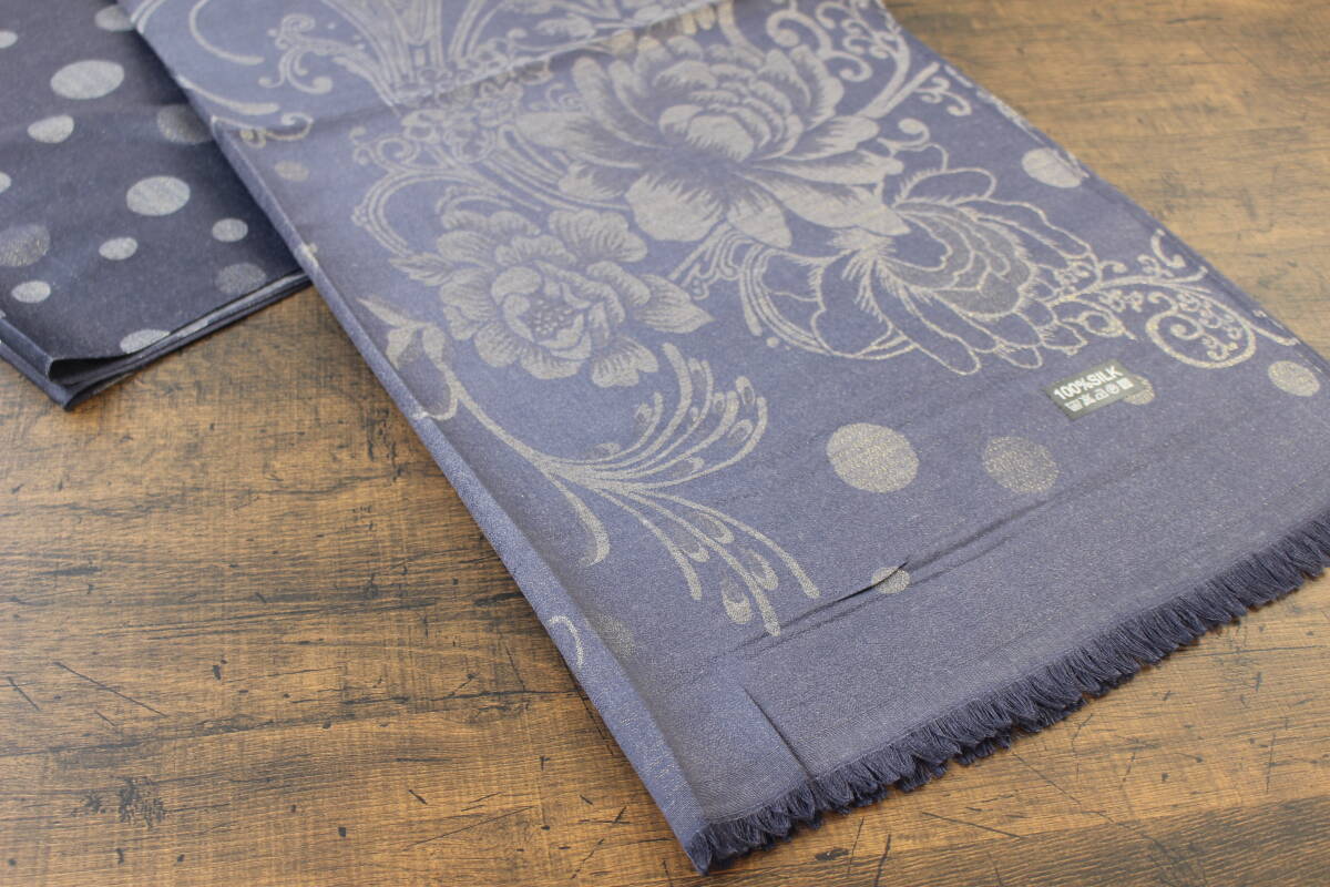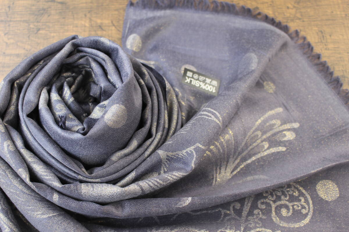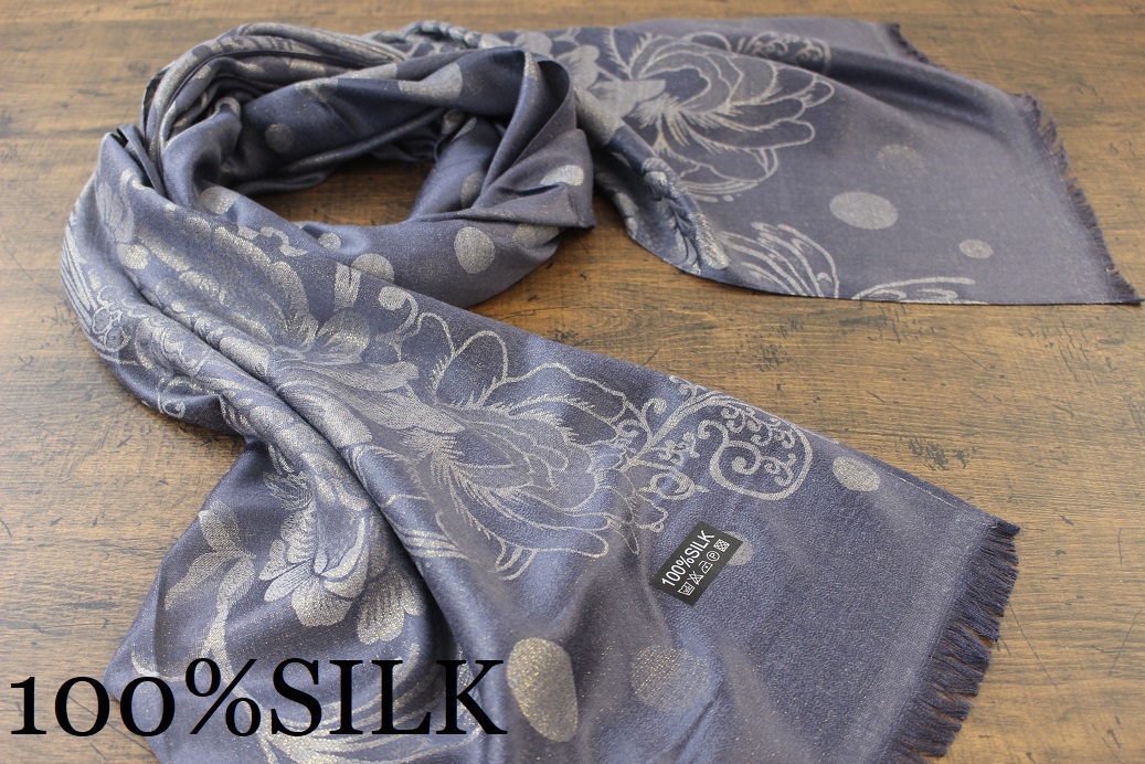 新品【シルク100% SILK】金糸混 ペイズリードット柄 ネイビーグレー 紺灰 NAVY GRAY 大判 ストール/スカーフ