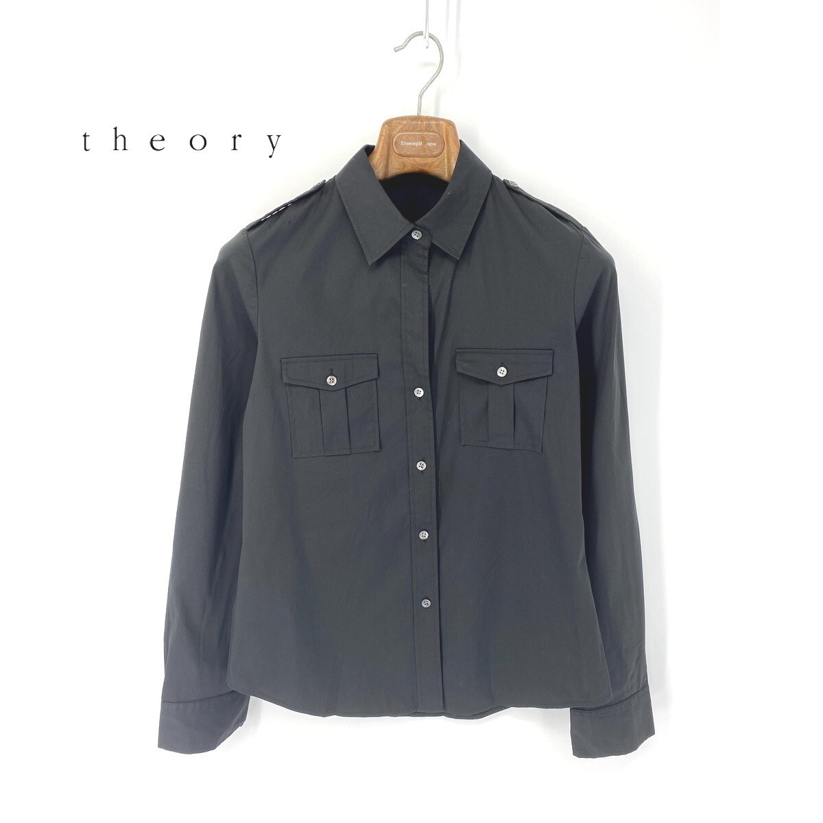 A6702/美品 春夏 theory セオリー コットン ストレッチ 長袖 ミリタリー ワーク ウエスタン ドレス カジュアルシャツ 4 L程 黒/レディース