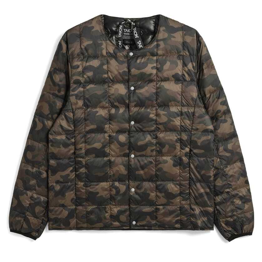 TAIONのインナーダウンジャケットは、アウターの中側、Tシャツやパーカーなどの外側にも気軽に使用していただける、軽くて使い易いシンプルなデザインが特徴です。