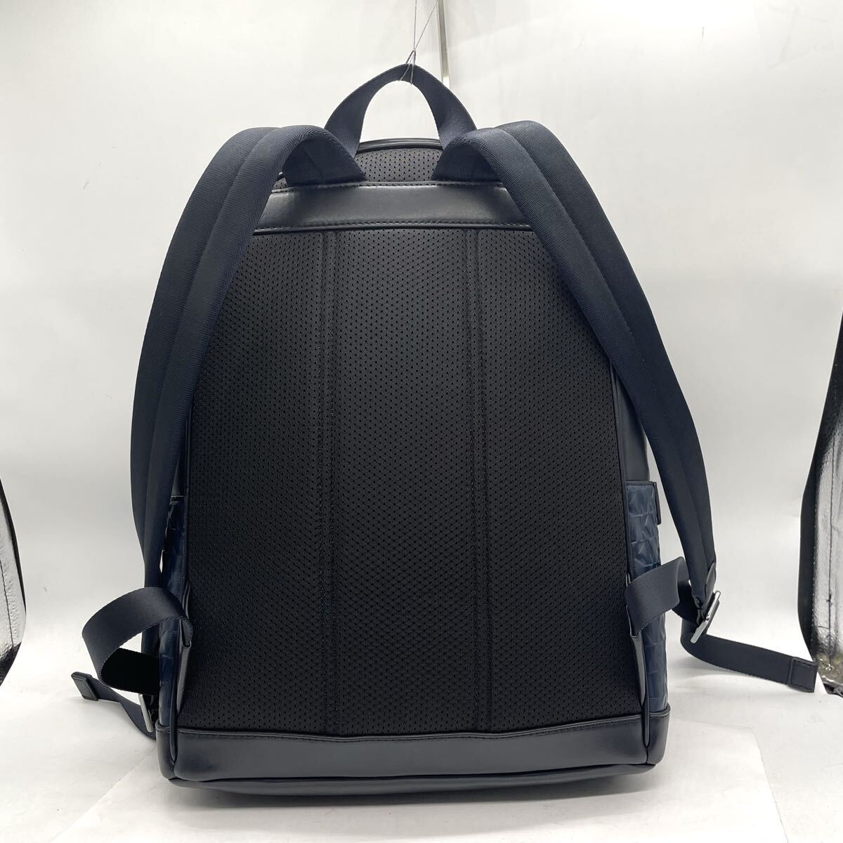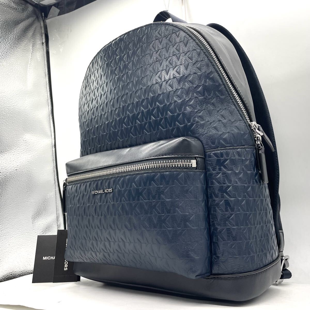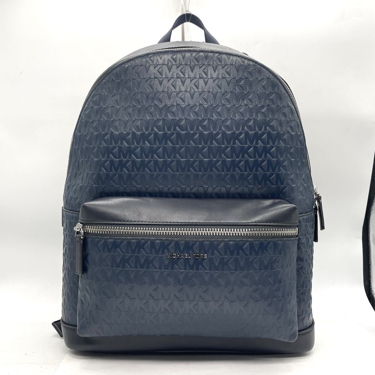 【美品】MICHAELKORS マイケルコース PVC レザー ネイビー 黒 エンボス 総柄 バックパック リュックサック 大容量 デイパック メンズ