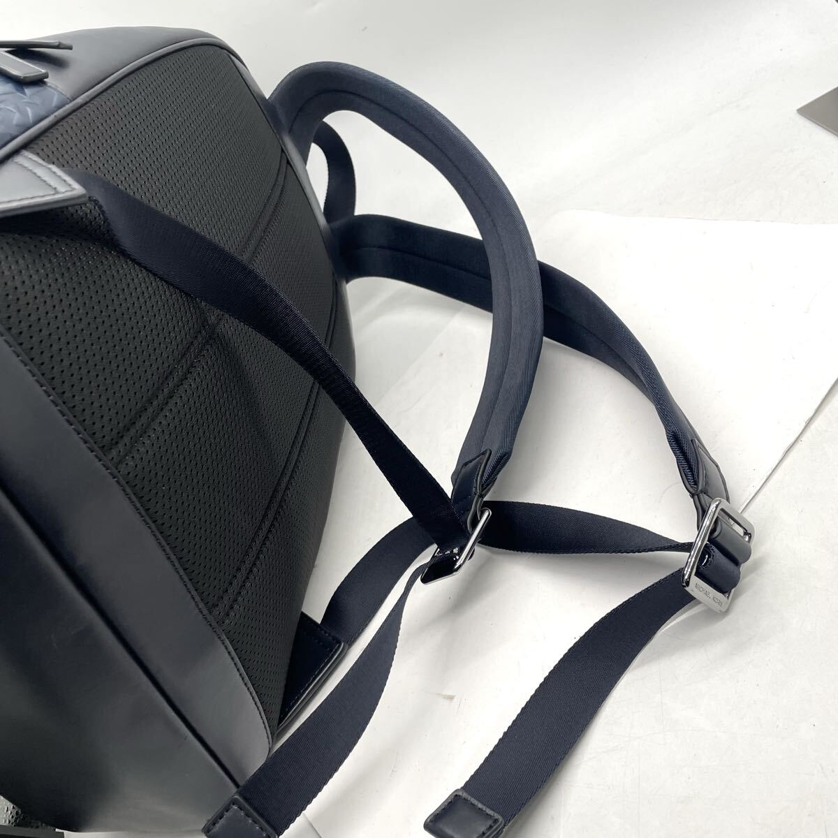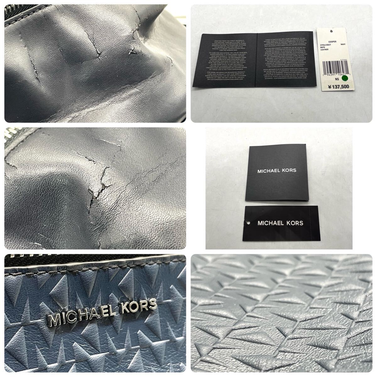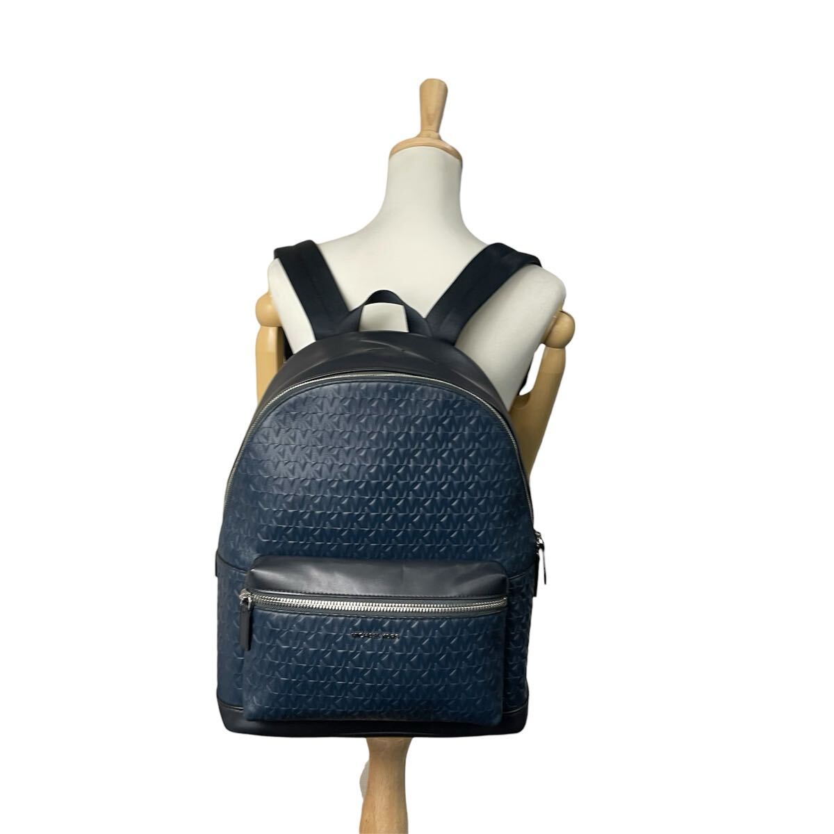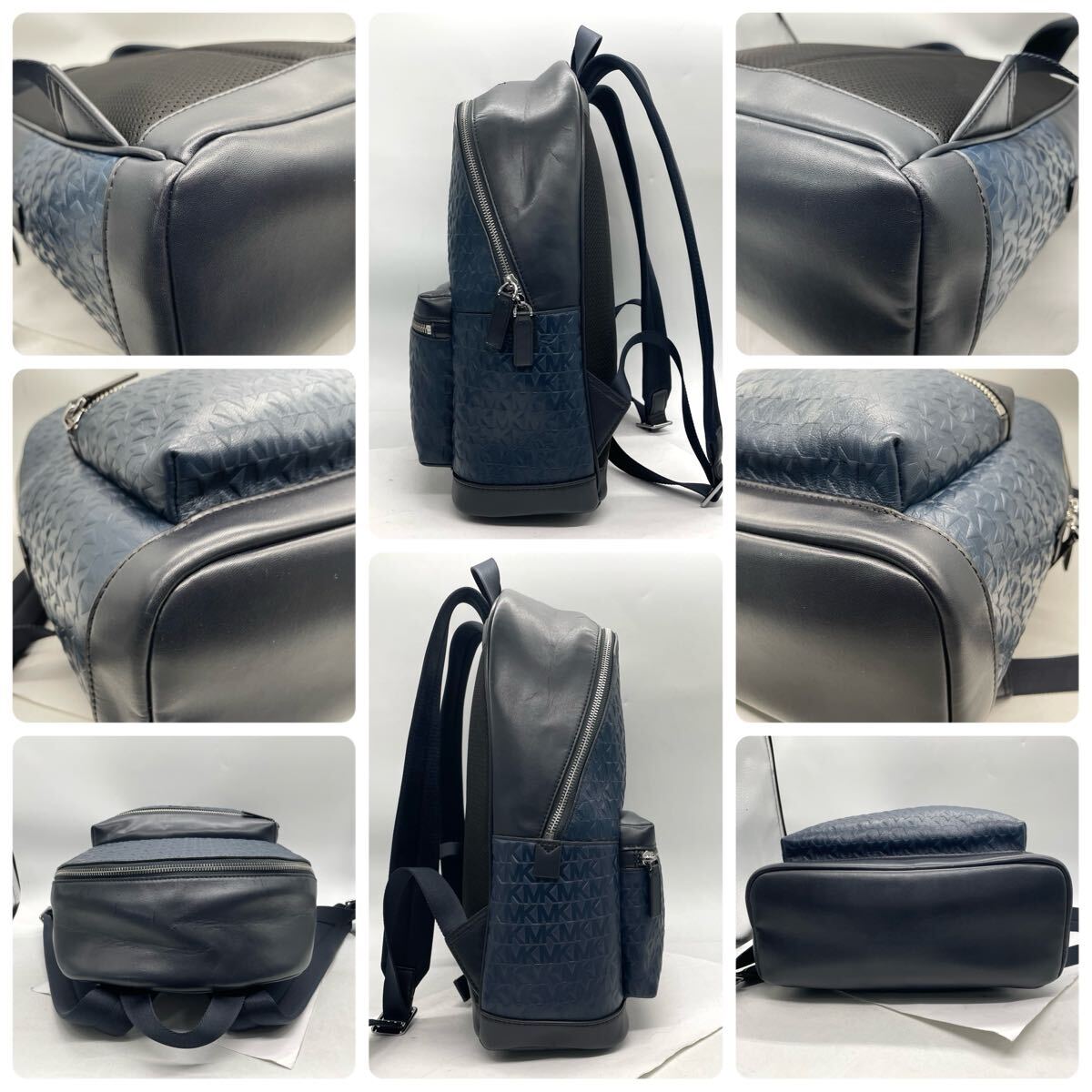 【美品】MICHAELKORS マイケルコース PVC レザー ネイビー 黒 エンボス 総柄 バックパック リュックサック 大容量 デイパック メンズ