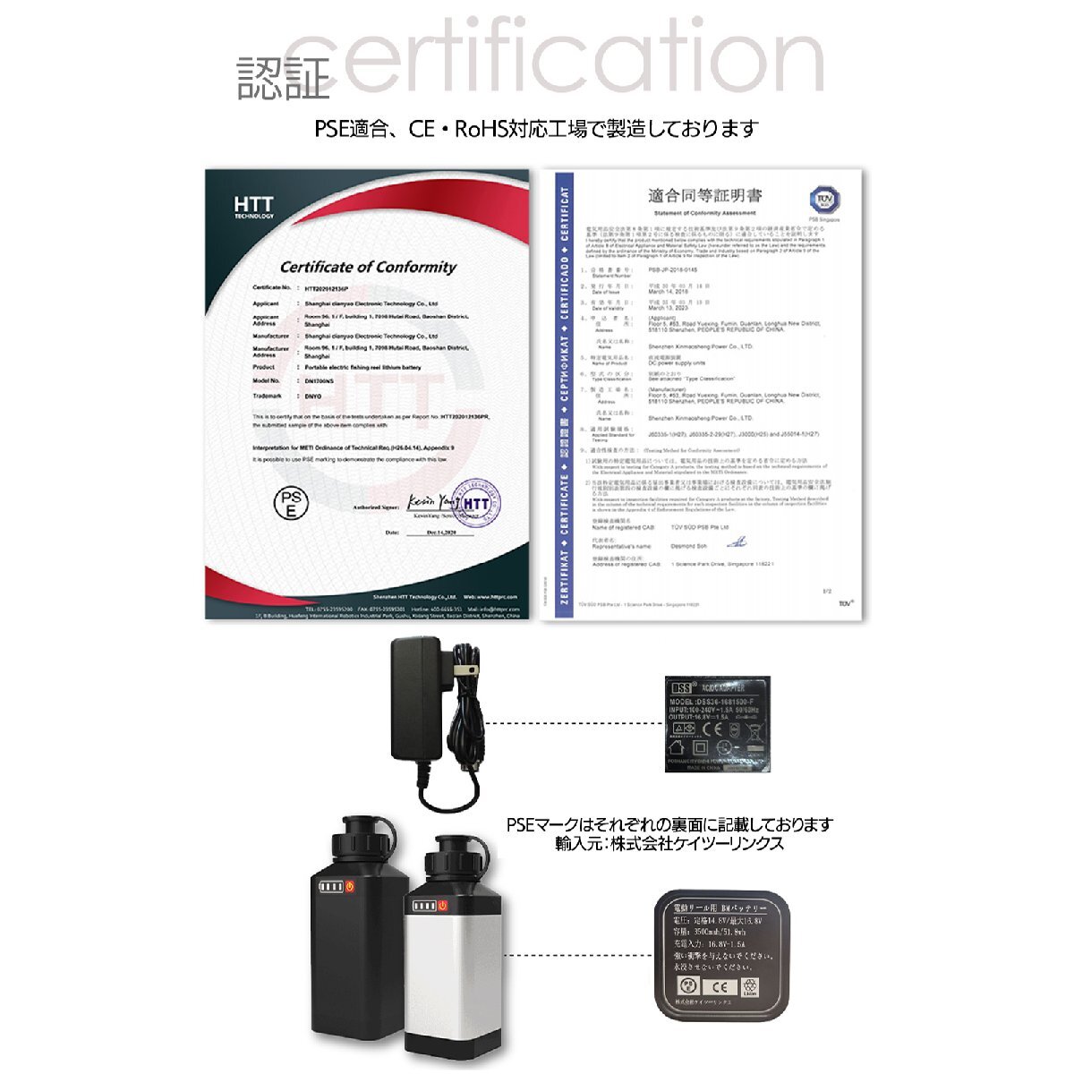 ・本製品はリチウムを使用しております。高温になる場所や湿度の高い場所での使用、保管は避けてください。 ・本製品を火気のそばで使用しないでください。 ・使用中は必ず専用カバーをしてご使用ください。 ・防水仕様となりますが、水洗い、水分が付いた状態での使用、保管は厳禁です。必ず拭き取りをし適切にご使用ください。 ・仕様表をよくお読みの上、適正な電圧・電流範囲内でお使いください。 ・バッテリーの残量が少なくなると、電圧低下によって電動リールの巻き上げスピードや強さに変化が起こったり、接続機器の動作に変化が起こる場合がございます。 |