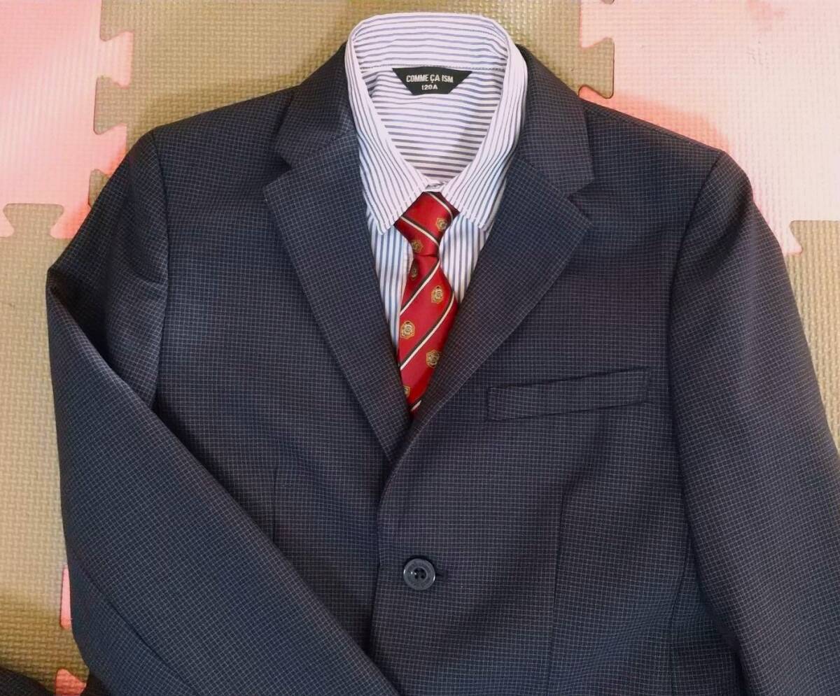 | COMME CA ISM(コムサイズム)のスーツ上下、シャツ、ネクタイのセットです。 スーツとシャツは予備ボタン付きです。 3回ほど着用しました。 スーツ、シャツ、ネクタイはそれぞれ別売りで、コーディネートして購入しております。 スーツ上下が130cm、シャツが120cmの大きさです。スーツとシャツはサイズが違いますのでご注意下さい。 スーツのズボンにはボタンで調節できるアジャスターが付いていますので、ウエストの大きさに合わせることができます。 スーツズボンの股下は約53cmです(ただし素人採寸のため、多少の誤差はお許し下さい)。 ネクタイはアジャスター付きですので、調整してお使いいただけます。 シャツはブルーのストライプ柄で、ネクタイには金色の模様が施されています。 スーツ、シャツ、ネクタイがセットになっているため、すぐにフォーマルな装いが完成します。 特別なイベントや学校行事、フォーマルな場面にご活用下さい。 長ズボンなので、寒い季節もお使いいただけます。 記名はありません。 シミや汚れはない美品だと思いますが、使用感などの感じ方には個人差がありますので、子供が使った中古品であることをご理解いただき、ノークレーム・ノーリターンでお願い致します。 ご不明な点等ございましたら、ご入札前に質問欄よりお問い合わせ下さい。 それではご入札をお待ちしております。 | |||
