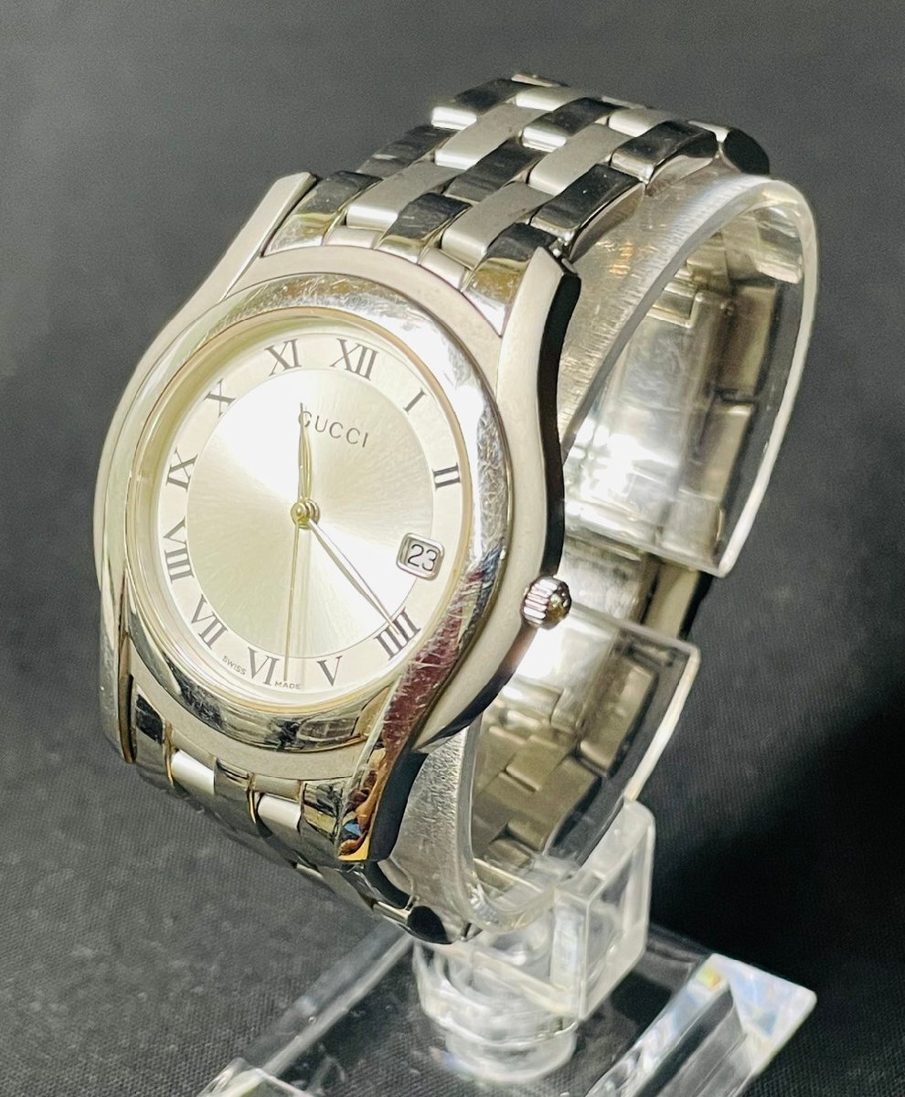 | 商品名 | 【9PW150】1円スタート GUCCI グッチ 5500M メンズ腕時計 ウォッチ 稼動品 クオーツ QZ デイト 3針 ラウンド 箱 コマ付き 現状品 |