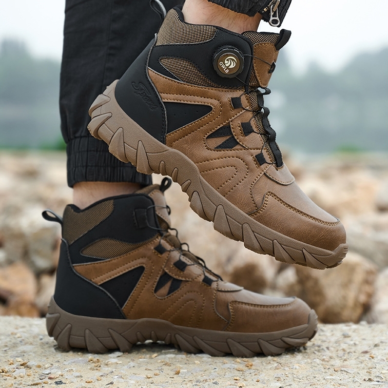 安全靴 ダイヤル式安全靴 ハイカット 防水 鋼製先芯入り 作業靴 耐滑 釘踏み抜き防止 耐摩耗 ブラウン JHC0012 26.5cm