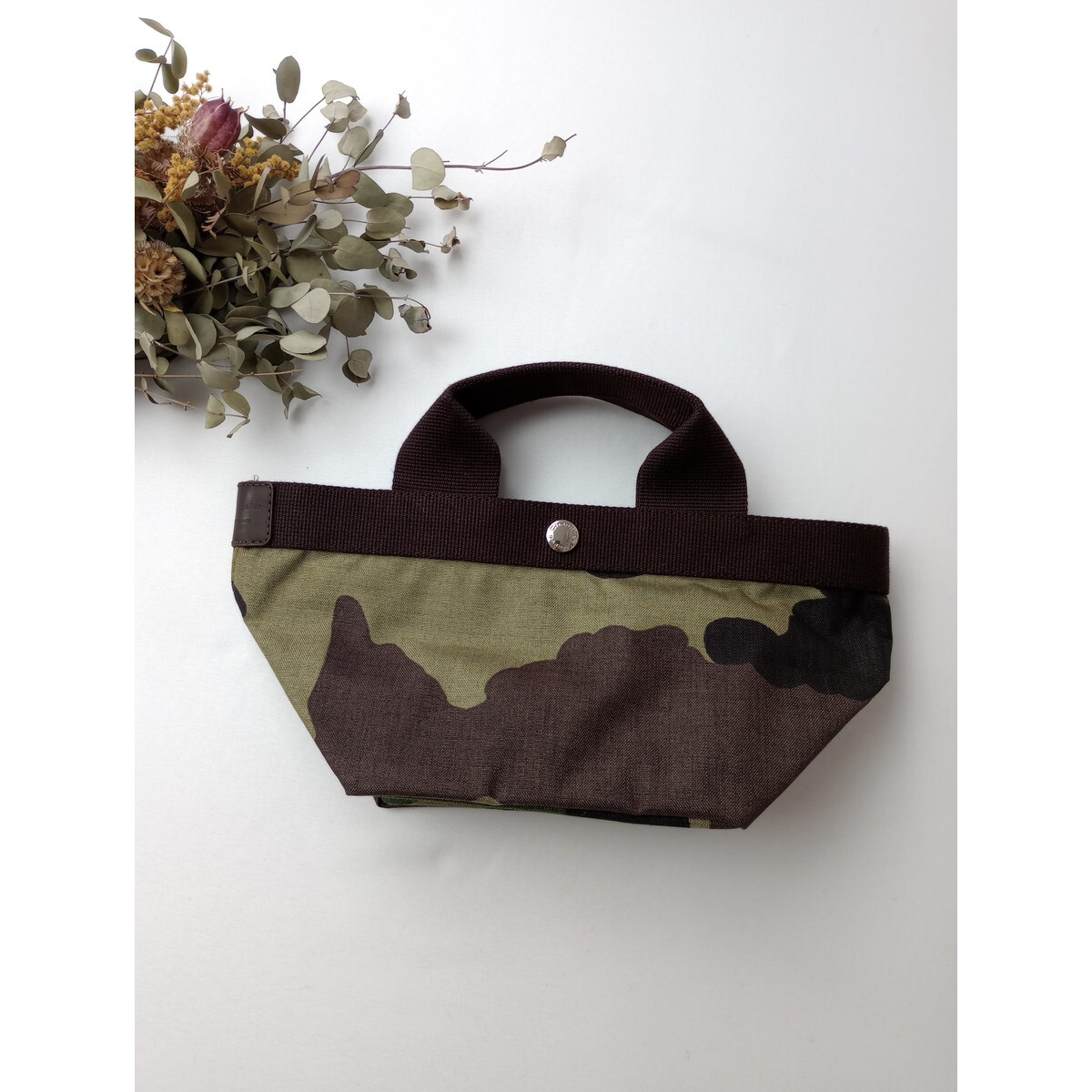 エルベシャプリエ Herve Chapelier ミニ トート バッグ 舟形 迷彩 カーキ キャンバス カモフラ カーキ