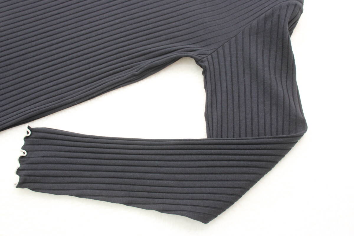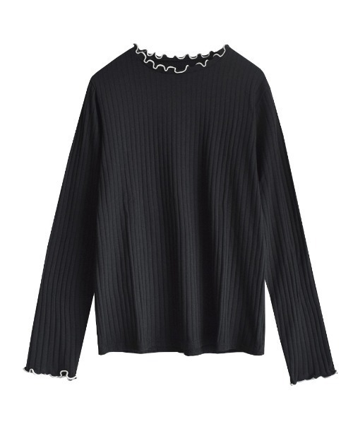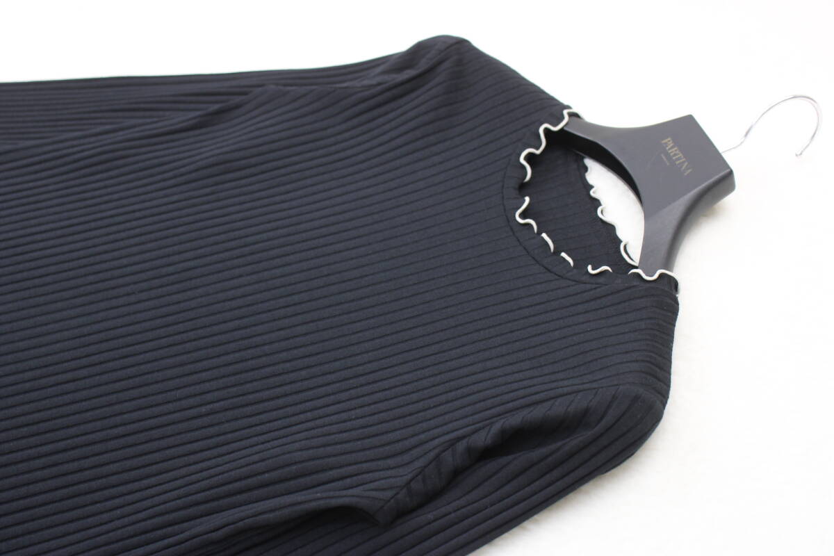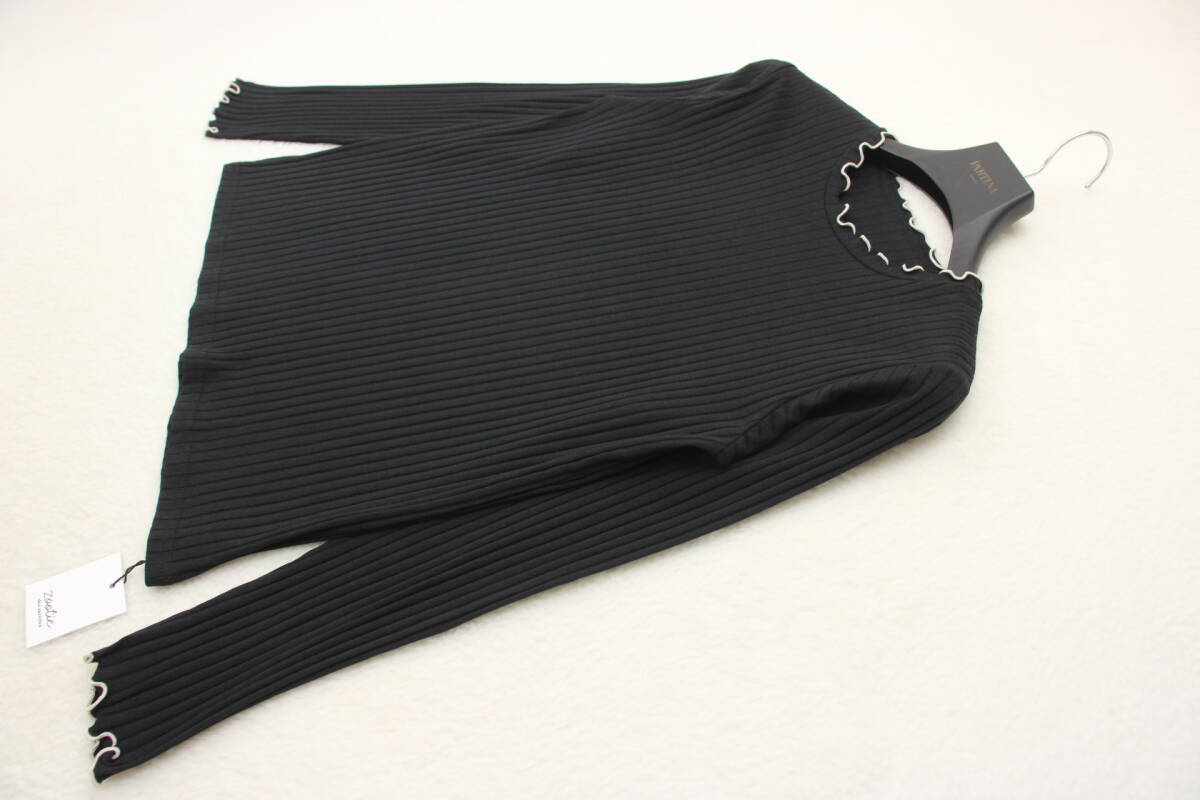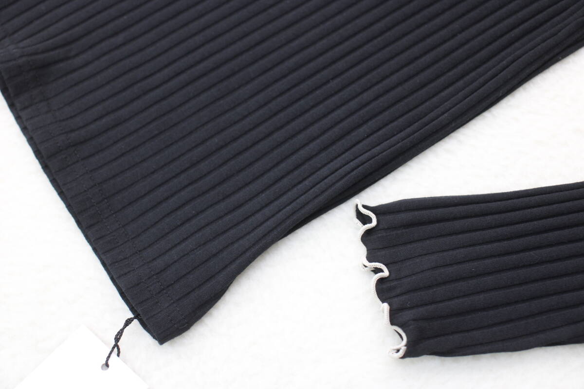 5127 新品タグ付き メロウフリルリブカットソー ブラックLサイズ
