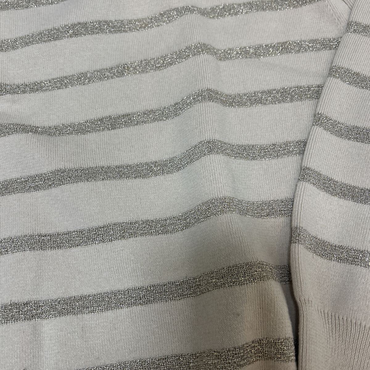 ジャーナルスタンダード購入した、ゴールドラメボーダーカットソー、プルオーバーです。カジュアル過ぎず大人のボーダートップスです。比較的綺麗ですが、見逃しがあるかもしれません。低価格ですので自宅保管と画像を確認いただき現状お渡しにご理解のある方のみ入札お願いします。