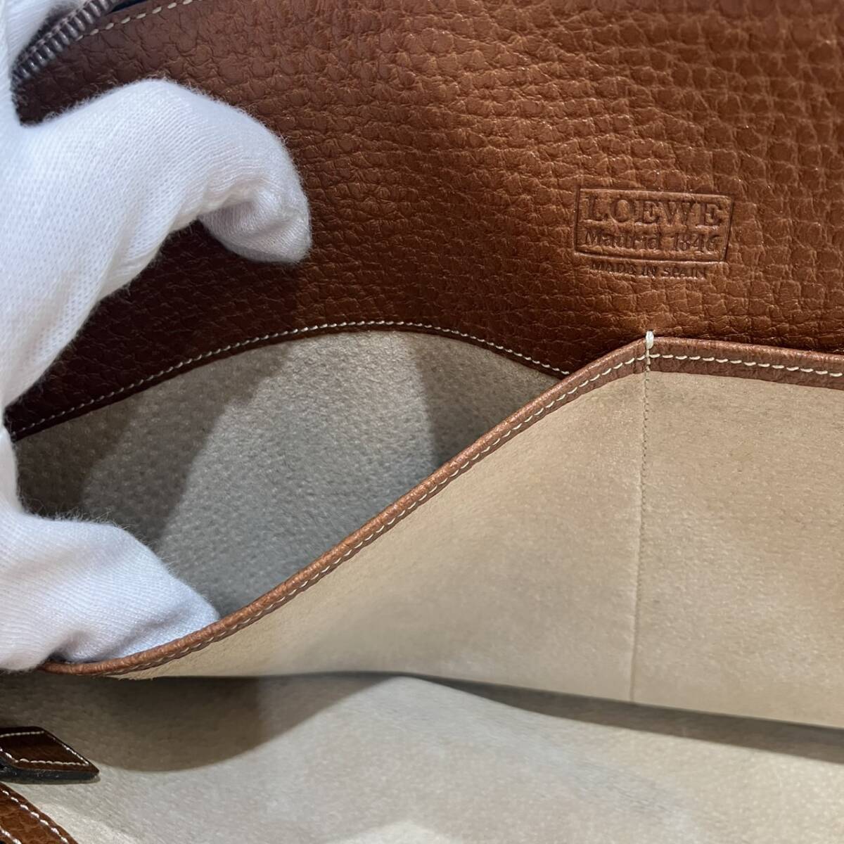 | LOEWE ロエベ アナグラム型押し レザー ポーチ クラッチバッグ スペイン製 ブラウン系 |