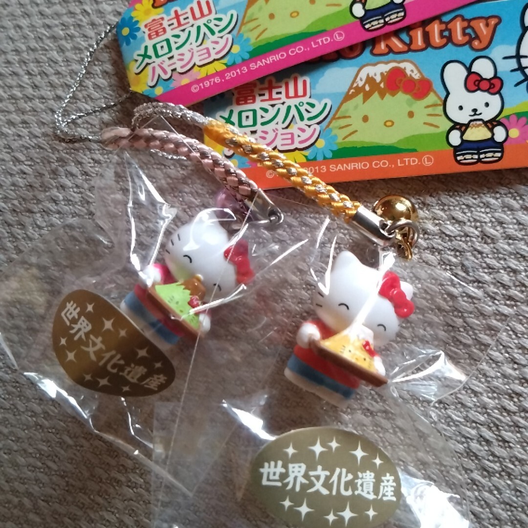 ご当地キティ 2013 富士山 世界文化遺産 祝記念 パン屋 ぽるとがる人気商品 富士山メロンパンキティちゃんコラボ 根付け ストラップ ピンク オレンジ 全2色セット 根付け ストラップ