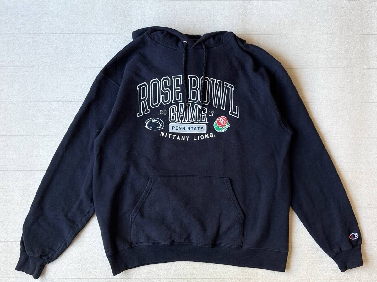 ☆送料無料☆ Champion チャンピオン USA直輸入 古着 裏起毛 プルオーバー ペンシルベニア州立大学 カレッジ パーカー メンズ L ネイビー