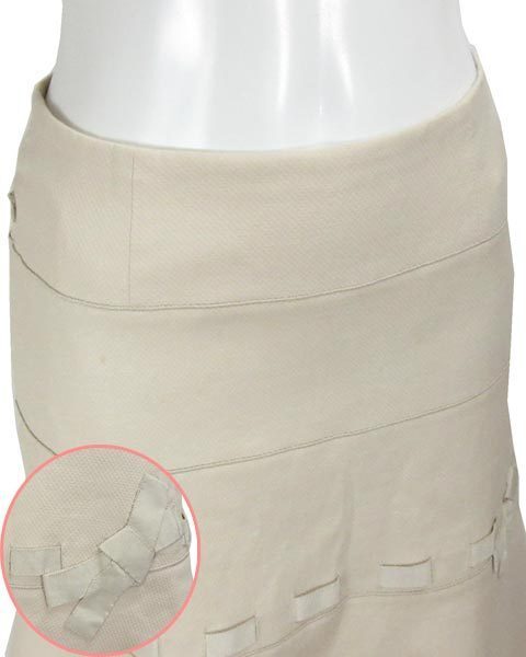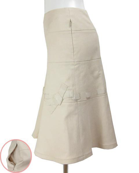 | はしごリボンのフェミニンなスカート。優しいベージュで上品な着こなしが楽しめます。きちんと感あるジャケットからカットソースタイルまで幅広くコーディネートしていただけます。 |
