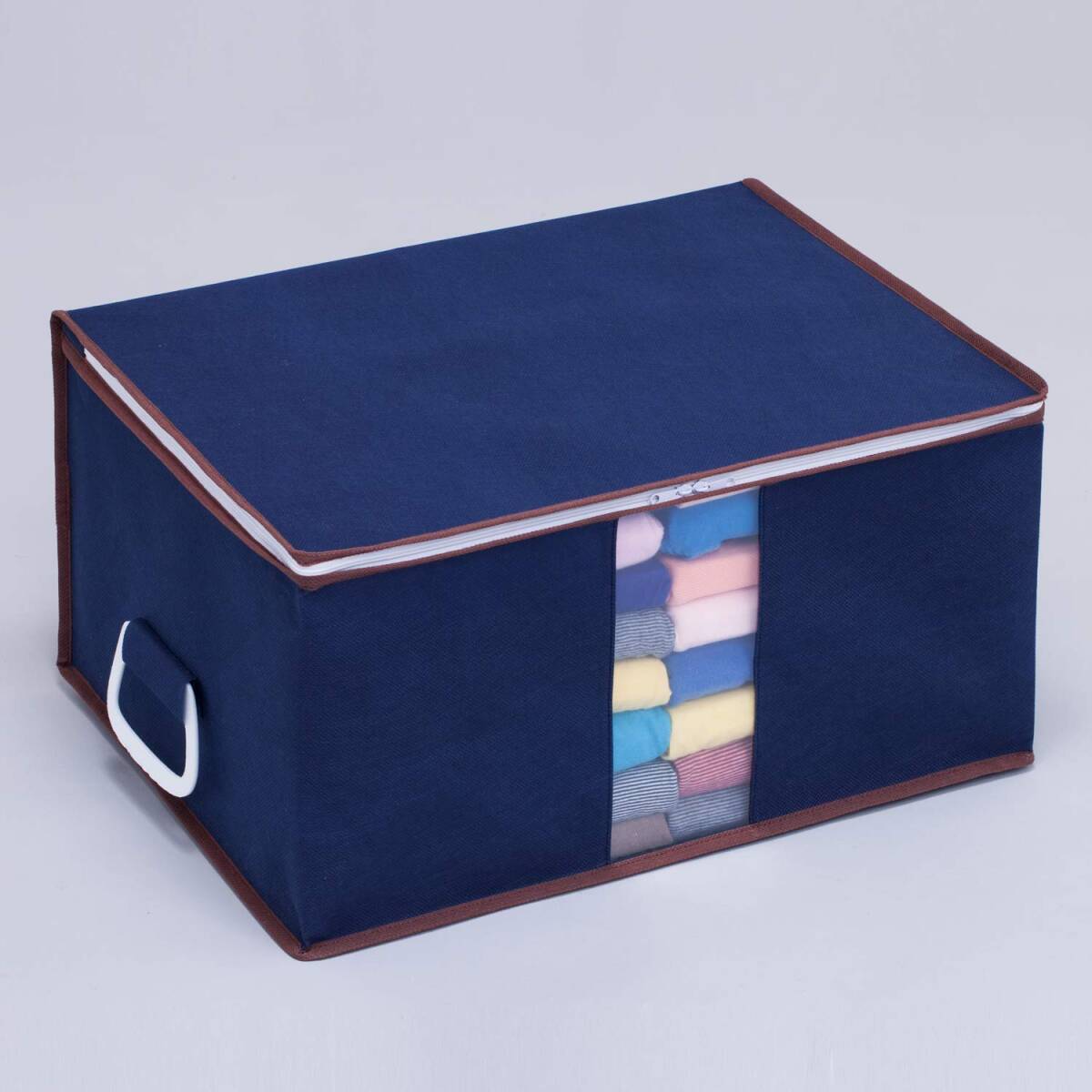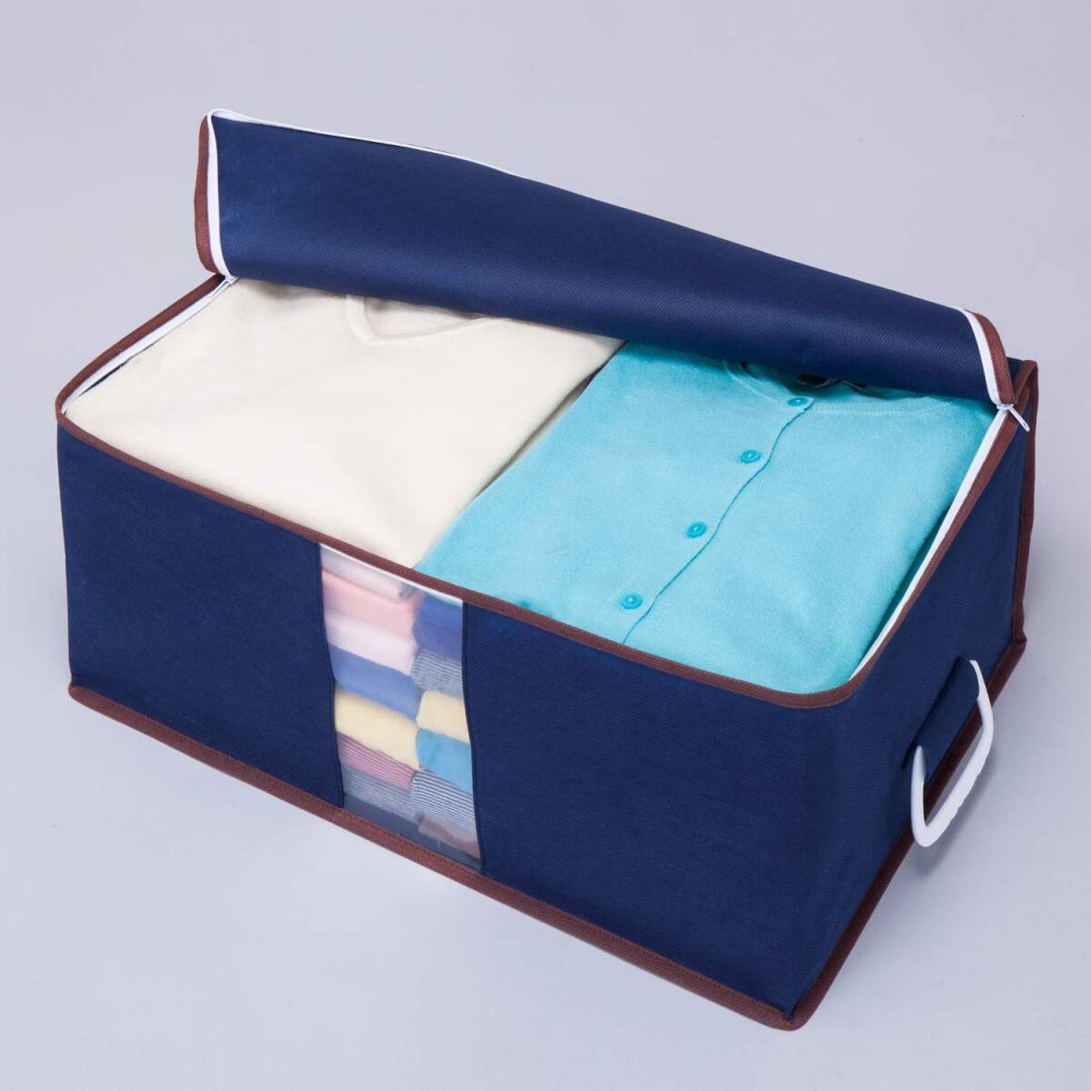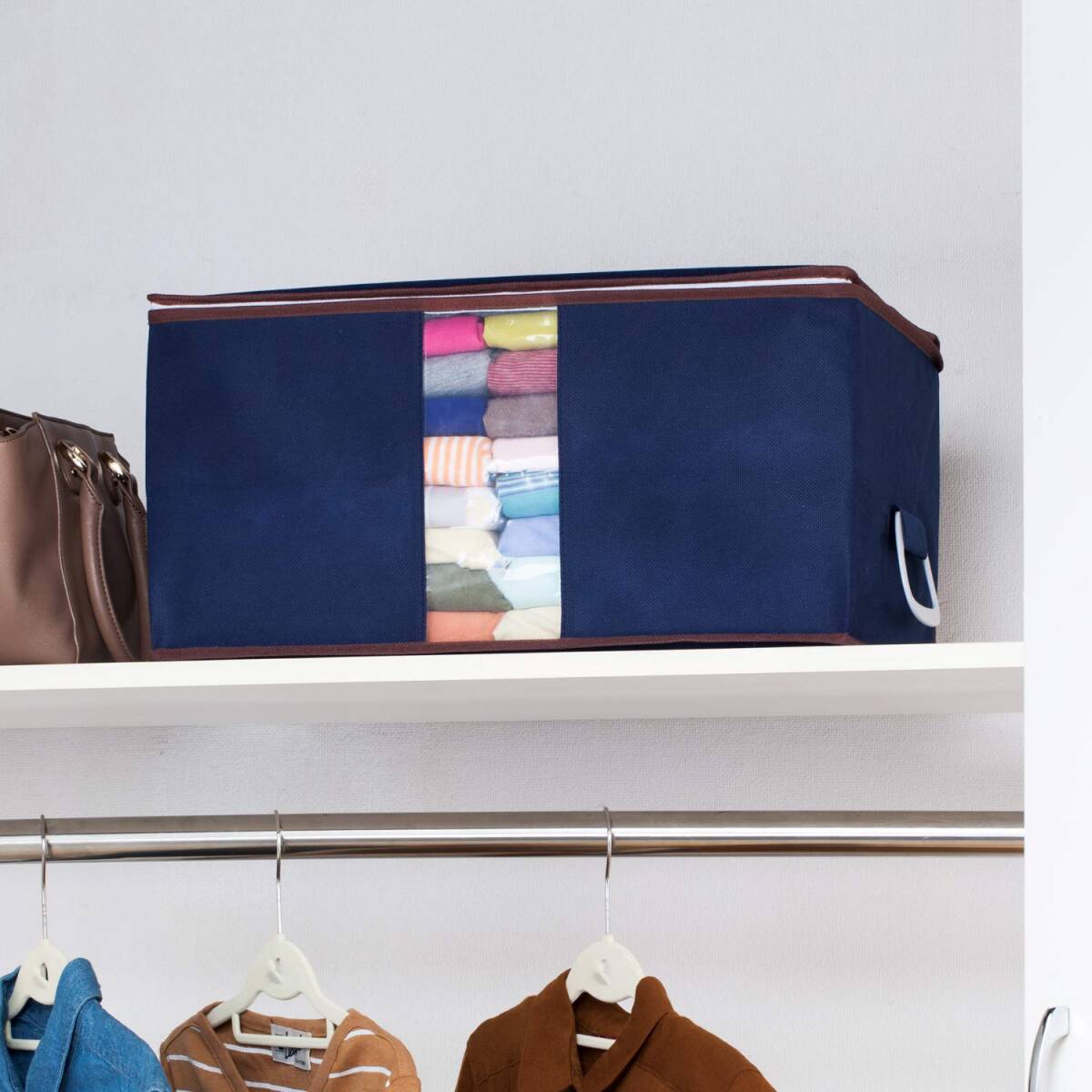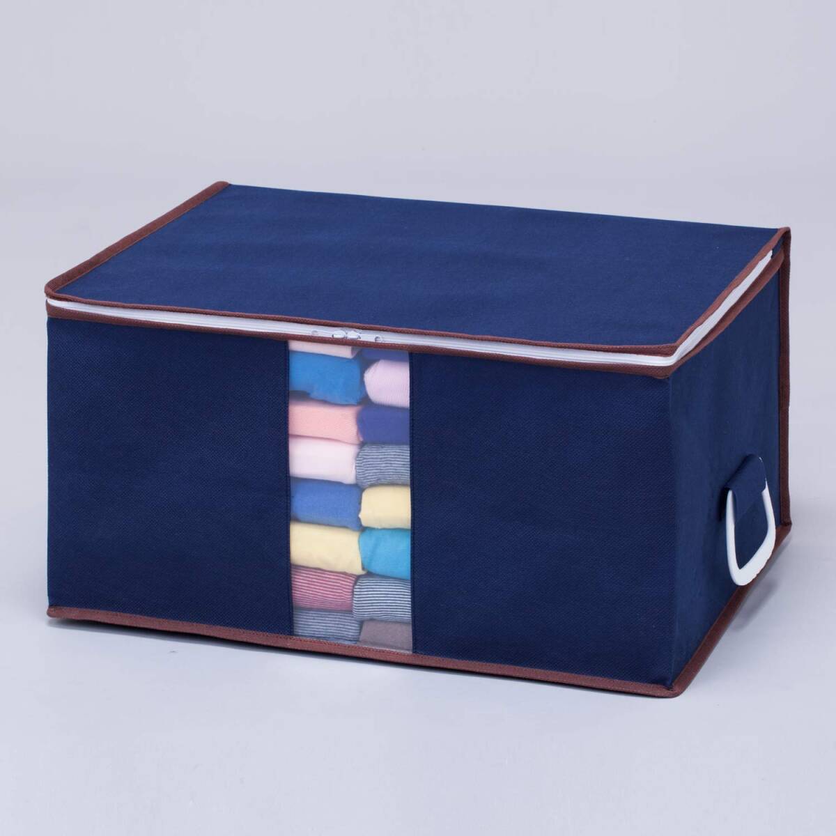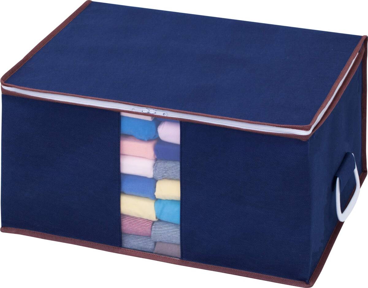 アストロ 収納ボックス 衣類用 ネイビー 不織布 持ち手付 618-43