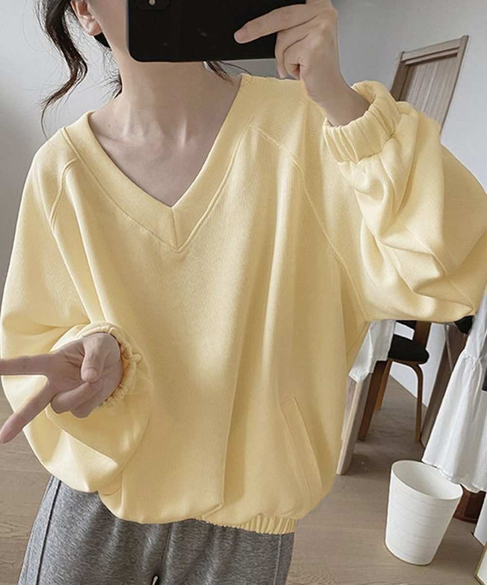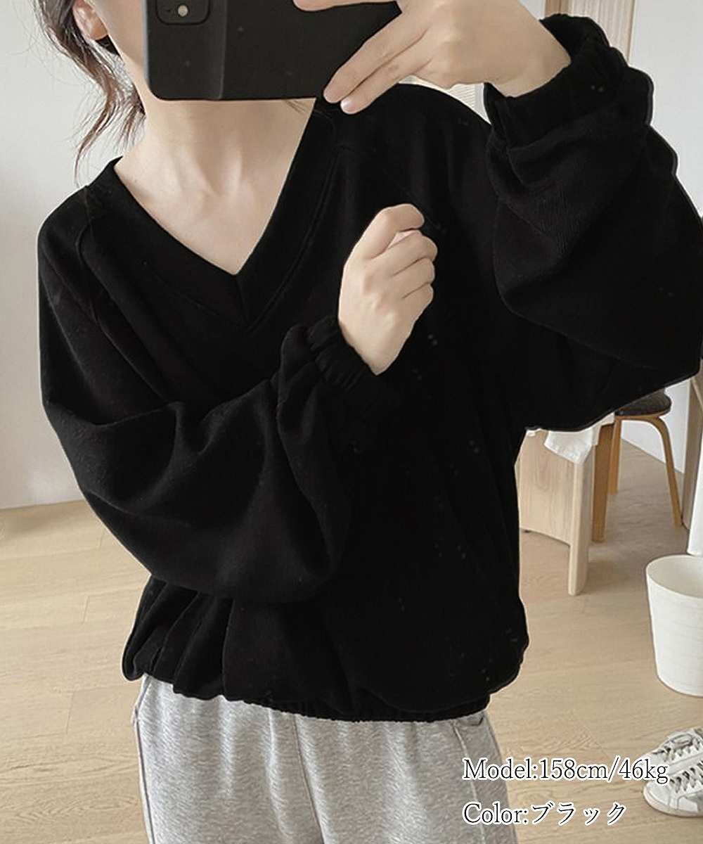 裾と袖口はゴム使いでふんわりシルエットを。デニムと合わせるカジュアルコーディネートや、ワイドパンツと合わせてシルエットにメリハリを出すコーディネートがオススメです。