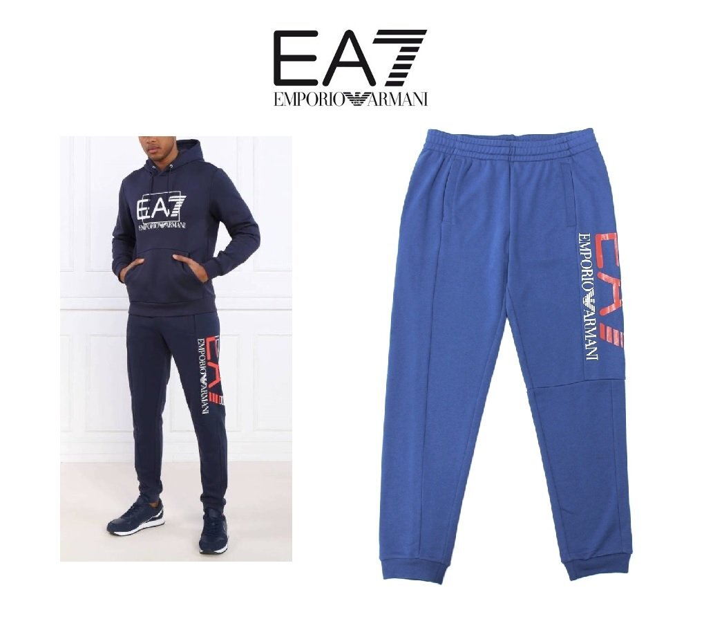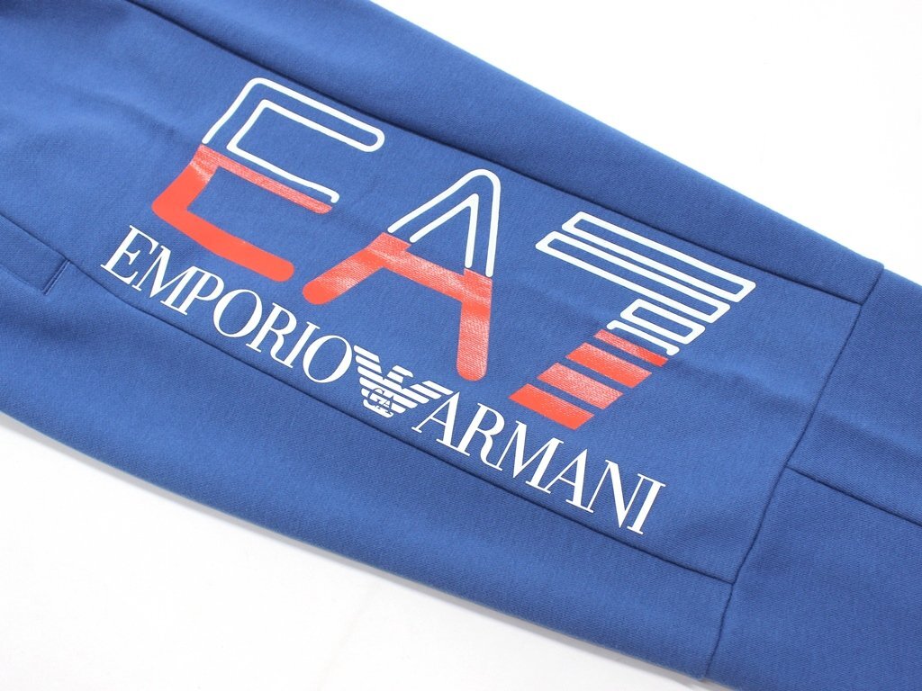 5万新品◆L◆EMPORIO ARMANI アルマーニEA7◆レギュラーフィット コットン混紡ロングスウェットパンツ ブルー青