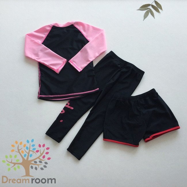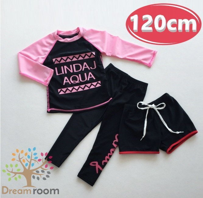 1スタ☆kids 3点set ラッシュガード+海水パンツ+レギンス セットアップ女の子 水着 長袖 【120cm】 K-249 スイムウェアー