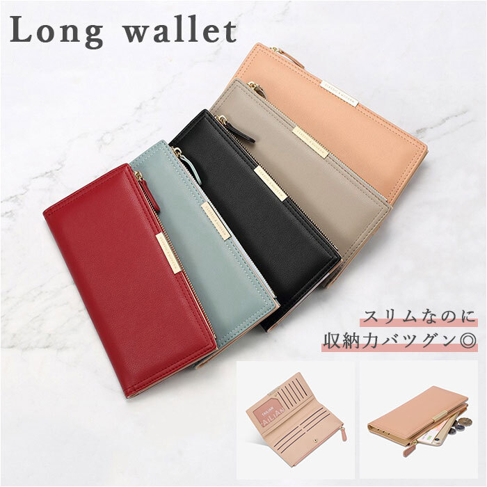 ☆ ライトグレー 長財布 レディース 薄い 通販 財布 レディース財布 カードケース ロングウォレット 薄型 きれいめ コンパクト 小銭入れ