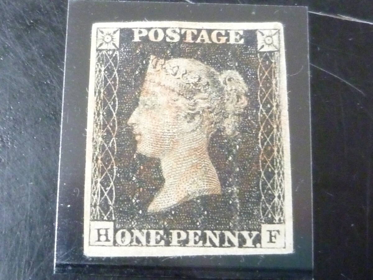 25L S イギリス 世界最初の切手 1840年 SC#1 ブラックペニー 1p 使用済・フルマージン・VF
