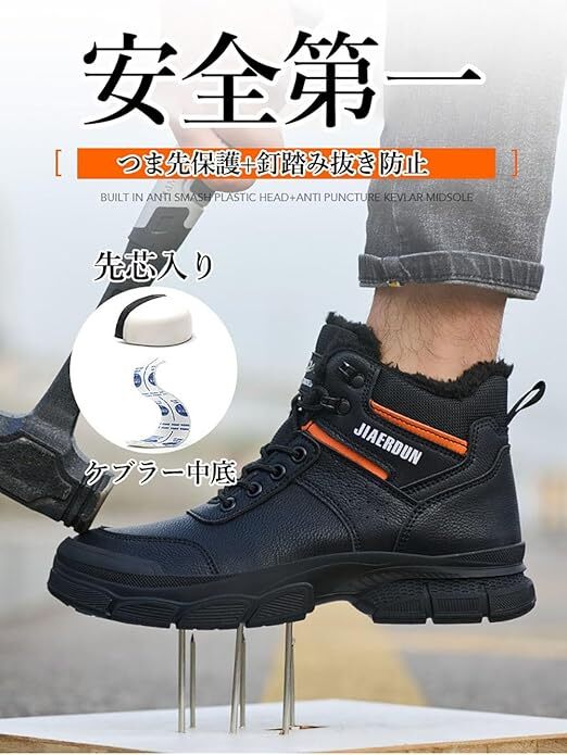 防寒安全靴 冬用 防水 あんぜん靴 寒冷地仕様 ハイカット セーフティシューズ 軽量 樹脂先芯入り 作業用 黒 サイズ:25cm