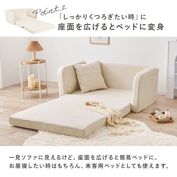 ※現在ご覧の商品ページはアイボリーのご購入ページとなります。 ヤフオクの仕様上単一ページに複数バリエーションを掲載することができませんので、他バリエーションが希望の場合は別ページでご購入お願い致します。 座面を広げると簡易ベッドに。 肘はリクライニング機能付きでリラックスしやすい体勢に合わせて角度を調整可能なコンパクトソファベッド。 配達業者を指定いただくことはできません。 北海道/沖縄/離島のお届けに別途中継料金が発生します。 ※別途送料が発生する場合は後ほどご連絡させていただきます。 当店は正規店です。 タイミングによっては在庫切れの場合があります。
