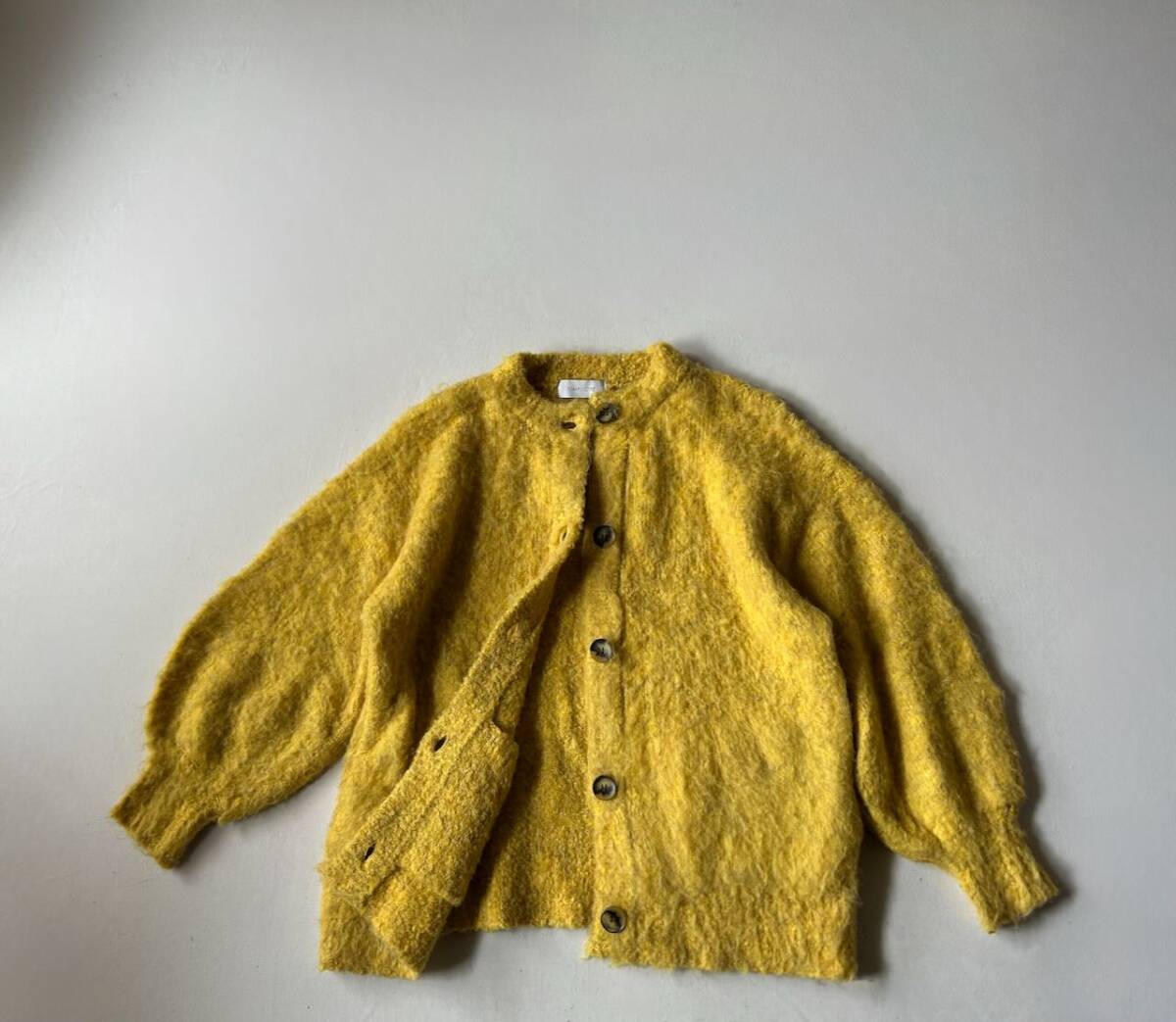 IENA イエナ SIMPLICITEの、もこもこしたシャギーの可愛いニットカーディガンです。 色 イエロー系 フロントボタン開閉 左右ハンドポケット付き サイズ表示 なし 実寸 着丈60cm 胸囲52cm 肩幅50cm 袖丈48cm くらい (平置きにて計測しております。) 素材 ポリエステル59% アクリル30% % 毛8% ポリウレタン3% *画像でコーディネートした他アイテムは付属致しません。 中古品とお考え下さい。 特に目立つ汚れやキズはありませんが、素材の性質上、毛羽立ちがあります。 また、写真画像はモニター環境や撮影状況などに応じて、実際の商品とお色と少し異なる場合があります。よろしくお願いいたします。 ダメージの見落としがある場合はご容赦ください。 他、気になる点はご質問下さい。 なお、落札後のキャンセルはできません。 発送後はノーリターン、ノークレームでお願いします。 オークション終了後、2日以内にご連絡が取れる方のみご入札下さい。 万が一連絡が遅くなってしまう場合は、オークション終了前に、必ず質問欄より お問い合わせ下さい。 | ||||||||