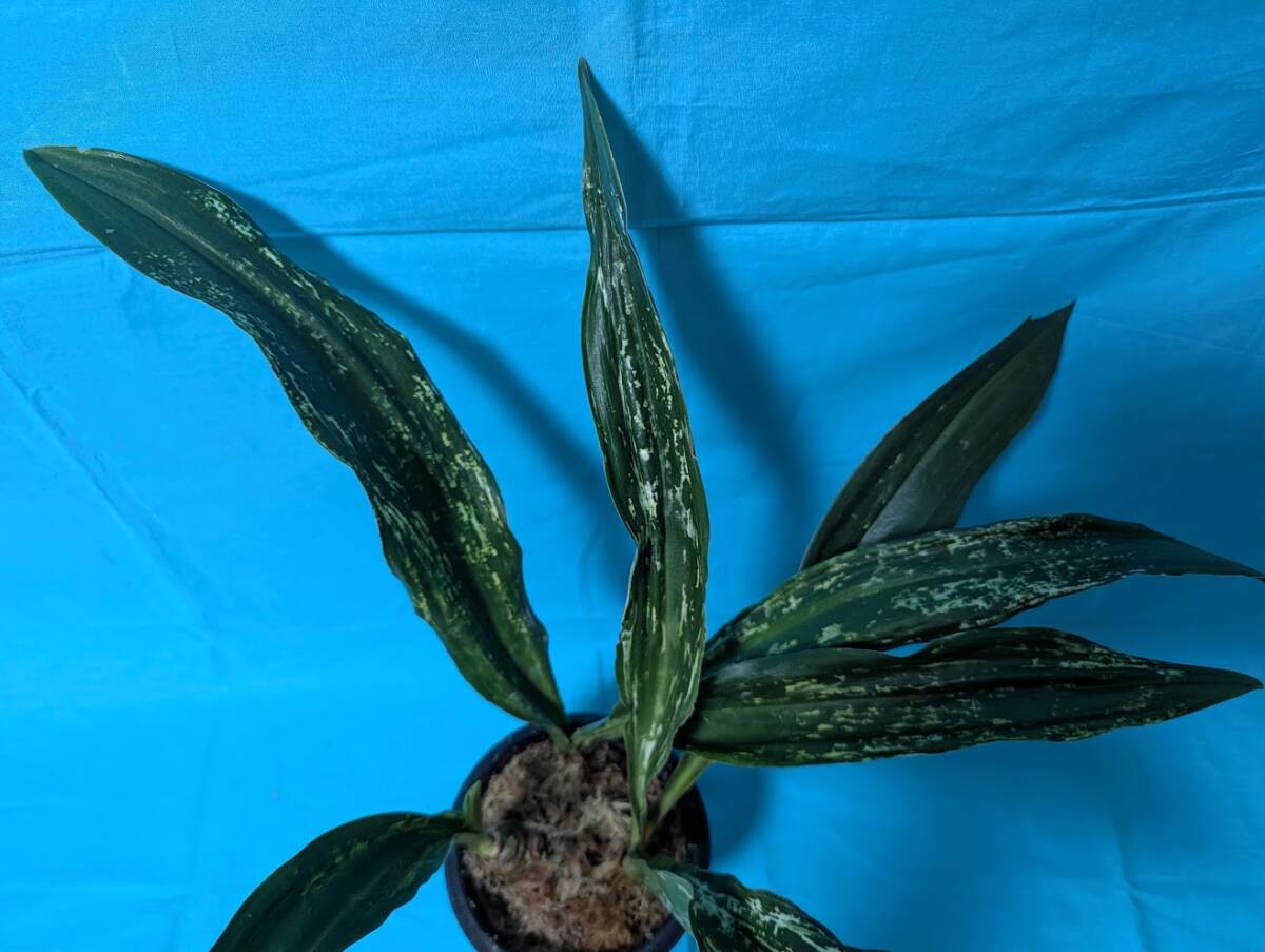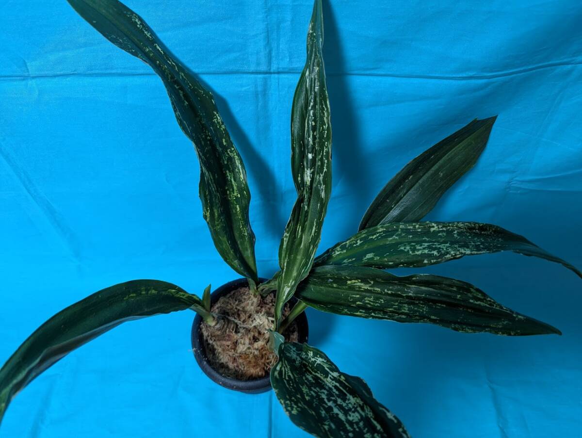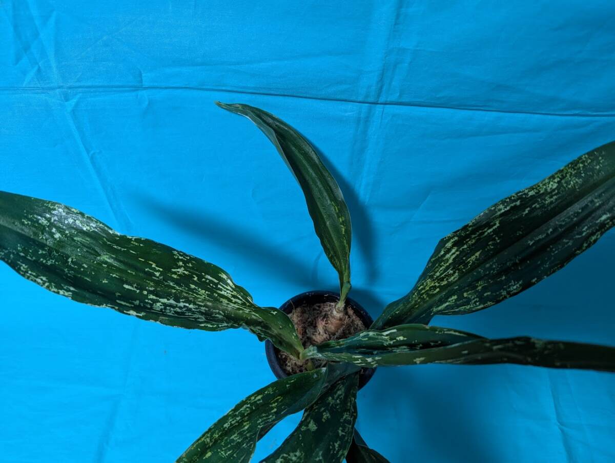 幅広の葉で先が丸をおび、白い図が葉全体に入るほど人気の高い品種です。