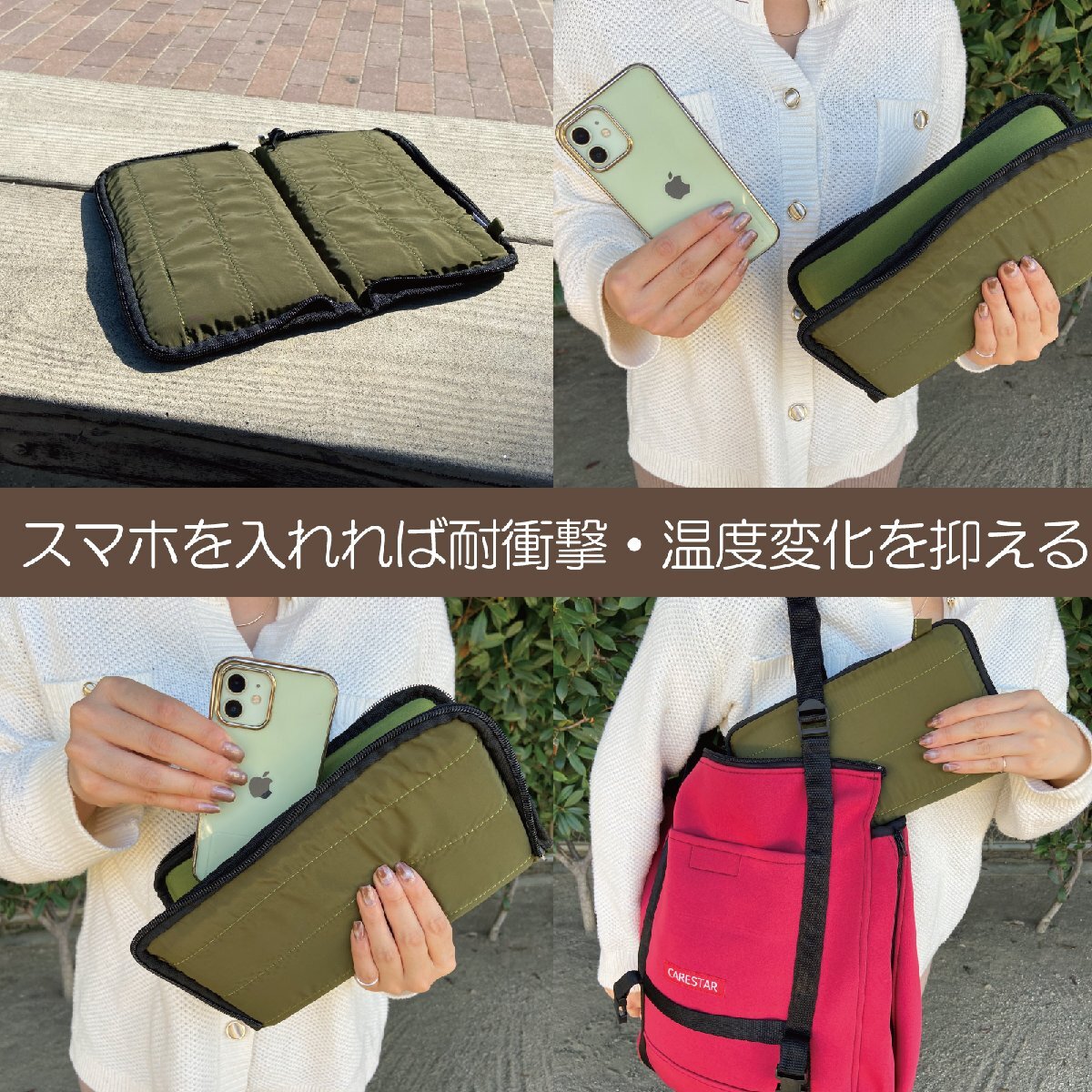 商品名 ●CARESTAR 電源不要1分でプラス18℃に。スマホも入る進化したあったか防水ミニクッション [携帯用蓄熱クッションマット] ネイビー