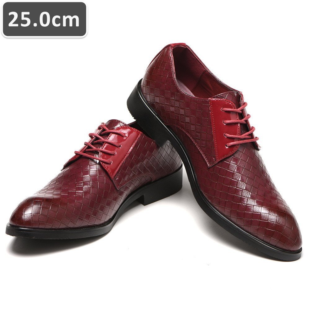 人気商品 ☆ メンズ ビジネス レザー シューズ レッド サイズ 25.0cm 革靴 靴 カジュアル 屈曲性 通勤 軽量 仕事 【612】