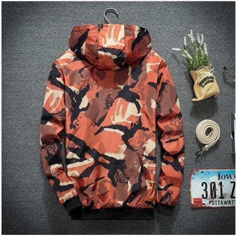 ☆お買得 【191】 迷彩 ウィンドブレーカー フード付き 橙迷彩 4XL メンズ ナイロン カモフラ 柄 アウトドア 防風 軽量 ジャケット