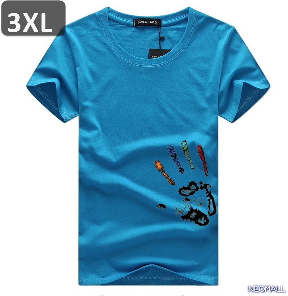 夏の定番 ☆ 丸首 半袖 Tシャツ【457】 ブルー 3XLサイズ トップス シャツ シンプル イラスト デザイン 春夏