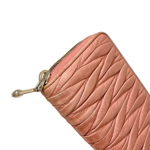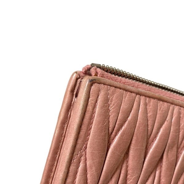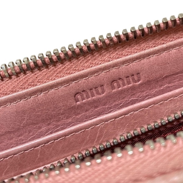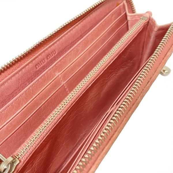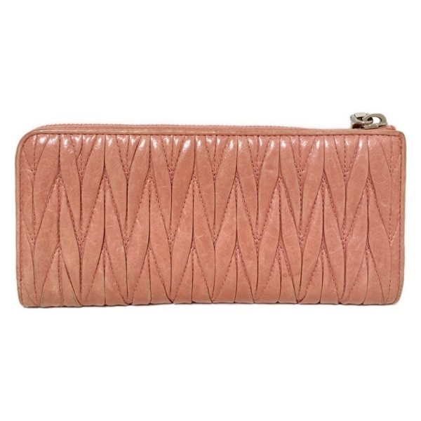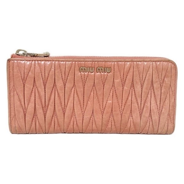 ミュウミュウ miumiu 長財布 5M1183 マテラッセ レザー ピンク L字ファスナー 財布
