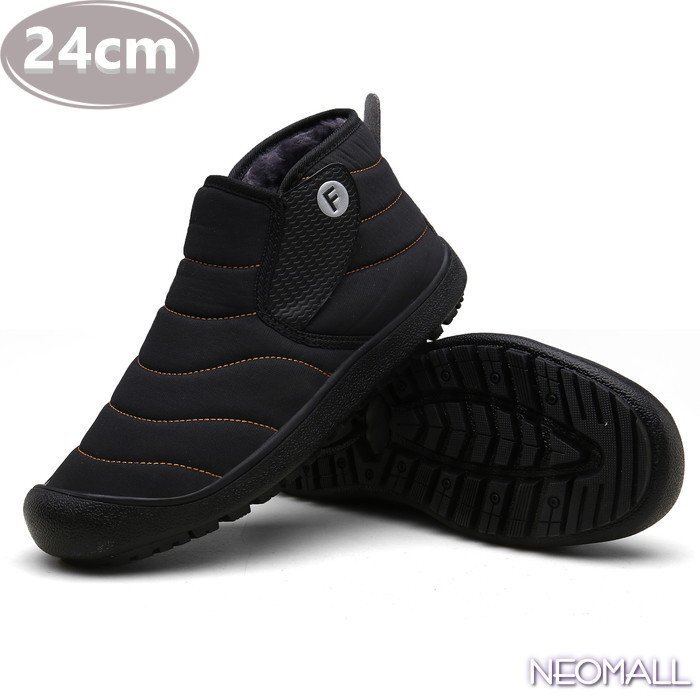 ユニセックス スノーシューズ 【869】 24.0cm ブラック ムートンブーツ スニーカー ウィンターブーツ 裏起毛 防水 防寒 防滑 冬用靴 綿靴