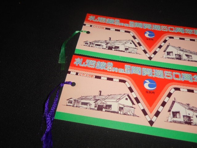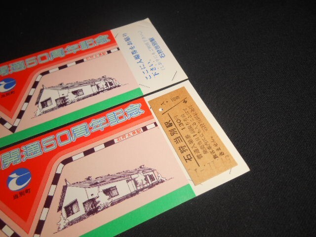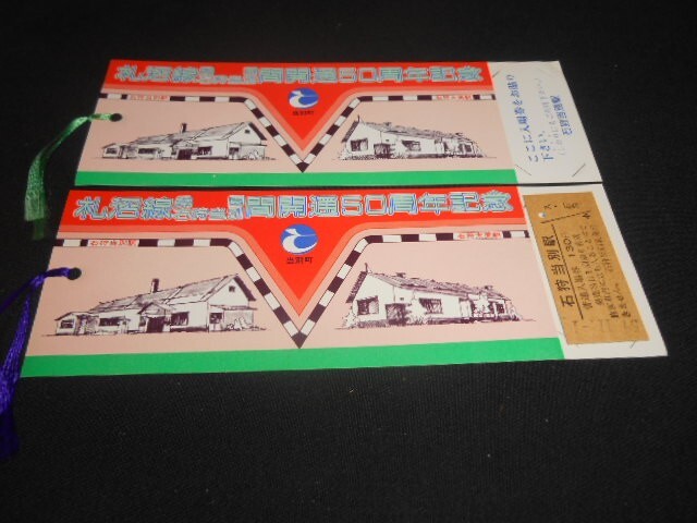 国鉄 石狩当別駅 札沼線開通50周年記念券 B型硬券入場券付となし 計2枚 昭和59年 送料110円