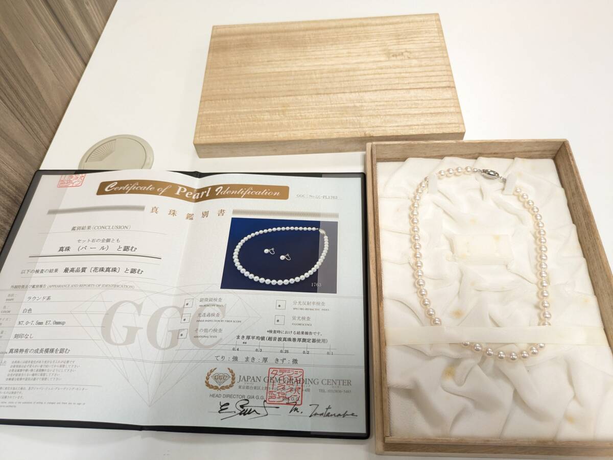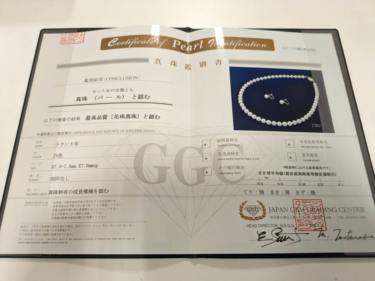 JAPAN GEM GRADING CENTER 真珠 パール ネックレス 7.0~7.5mm イヤリング欠品 シルバー刻印 真珠鑑別書付◆ 28679