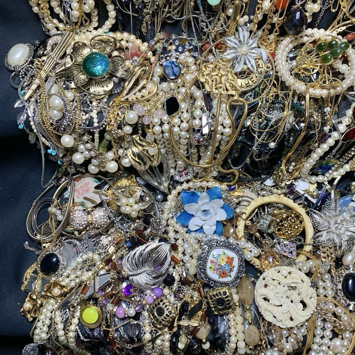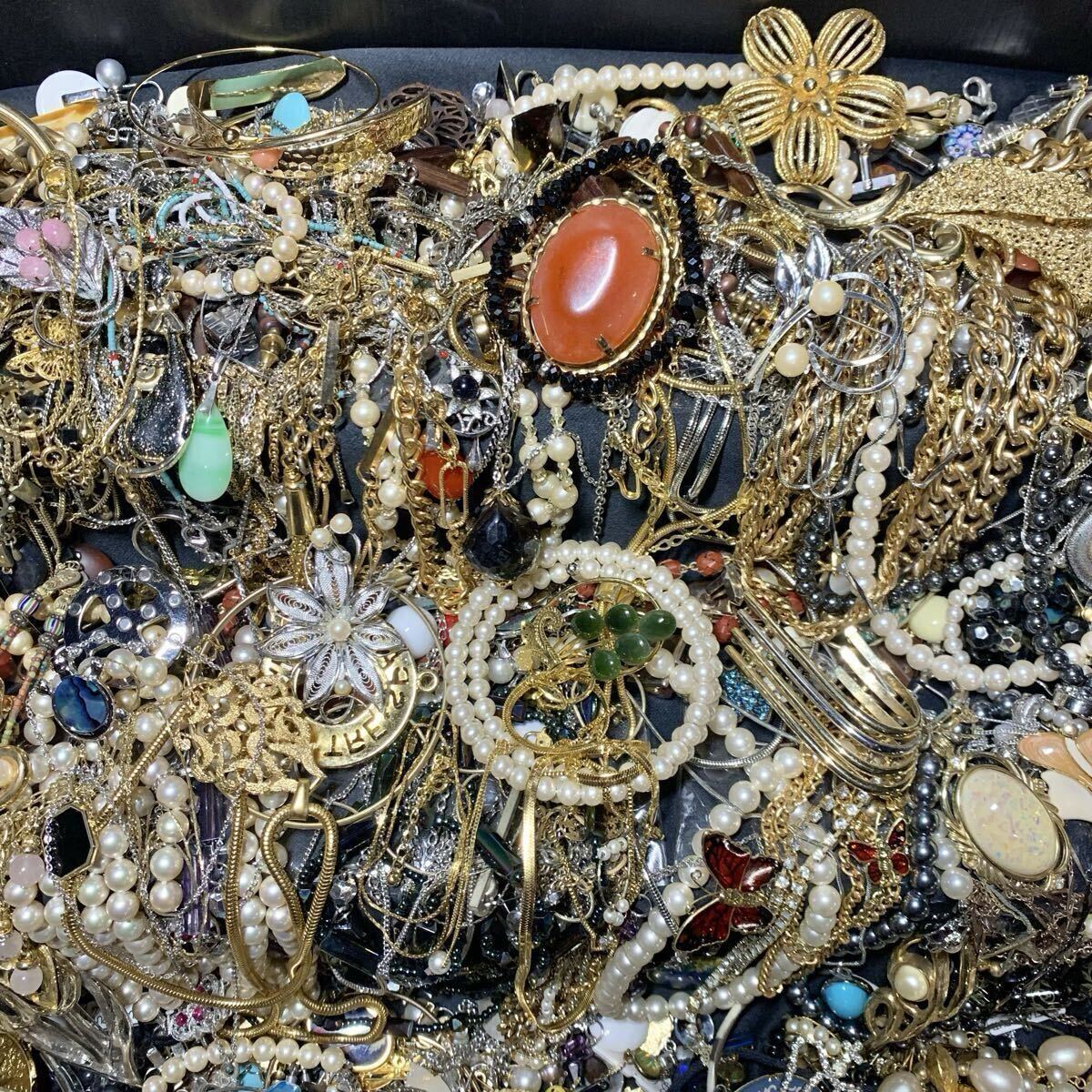 ネックレスからイヤリングなどのイミテーションが大量に入っています。