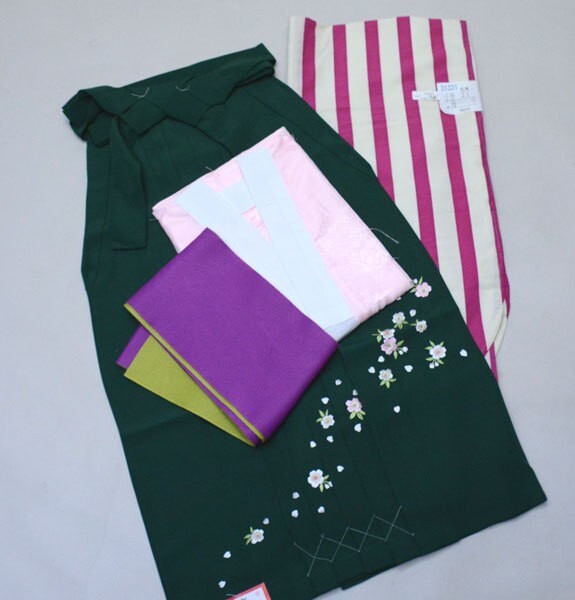 | セット項目 | 二尺袖 着物袴フルセット ・二尺袖着物 ・二尺袖長襦袢(半襟付き) ・袴 ・袴下帯(浴衣帯にも使用できます。) |