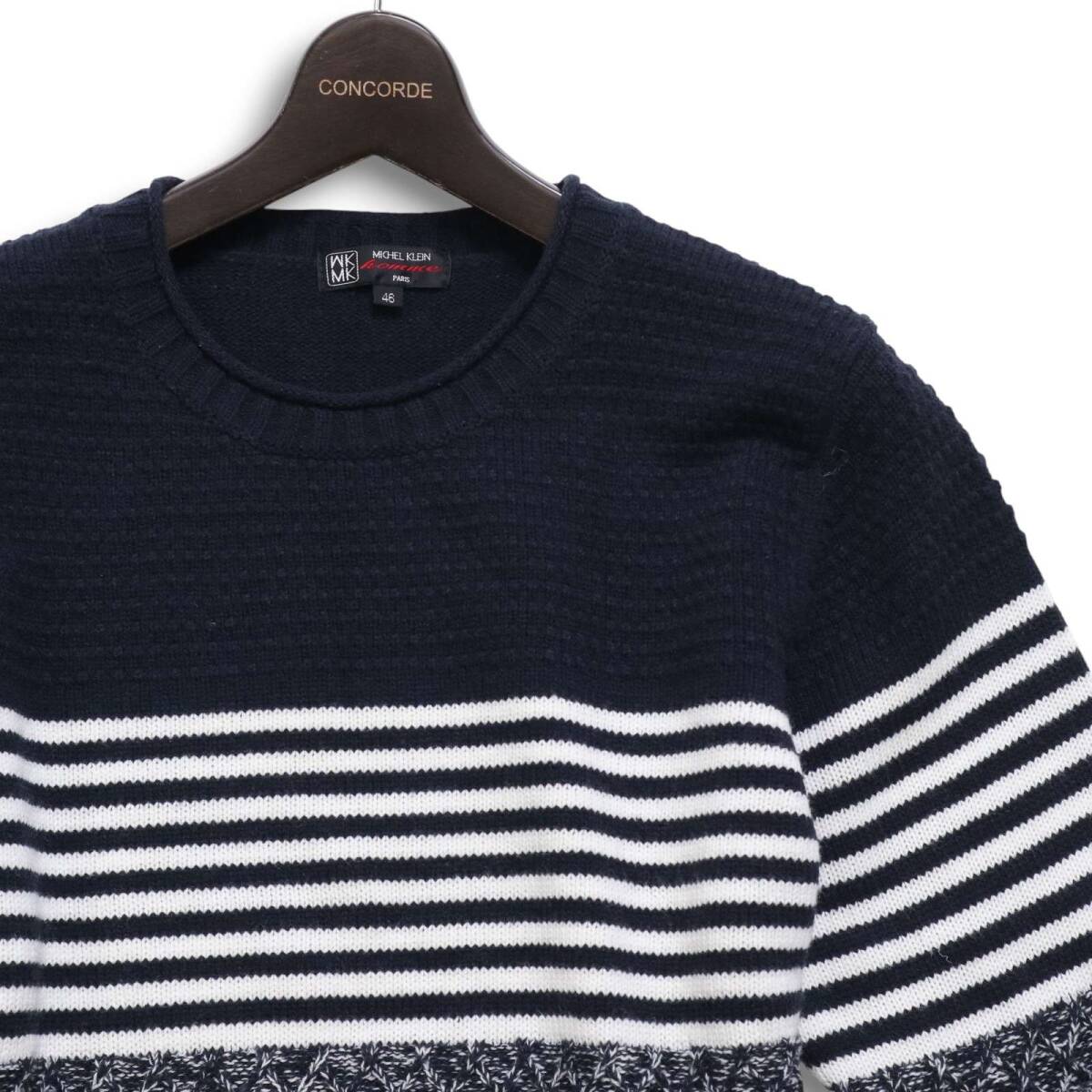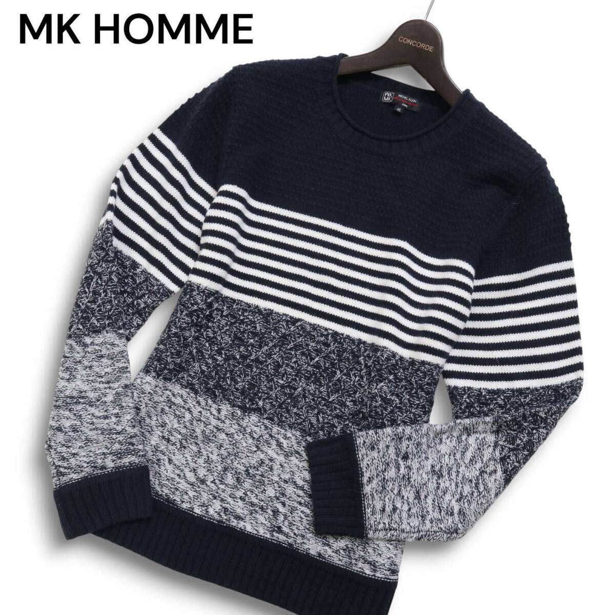 MK HOMME ミッシェルクラン オム 秋冬 ブロック ボーダー★ クルーネック ニット セーター Sz.46 メンズ ネイビー