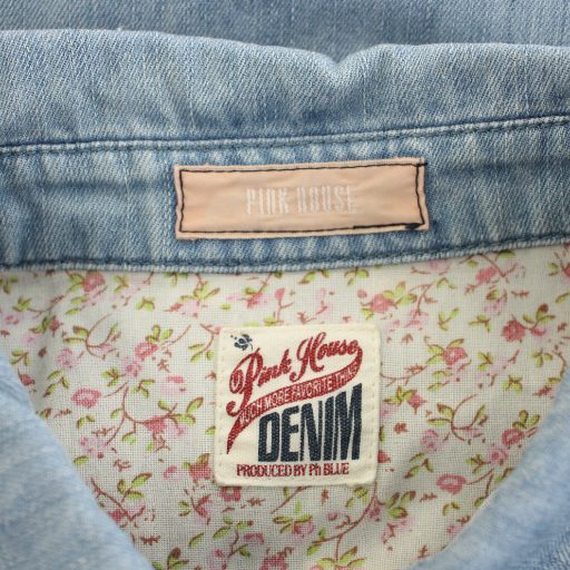 ピンクハウス PINK HOUSE デニム DENIM デニムシャツワンピース ひざ丈 長袖 ロゴプリント 水色 ライトブルー P013EFB74 /YT レディース