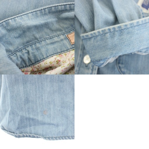 【状態】こちらの商品には下記のようなダメージがあります。 ・デニム生地特有のアタリあり ・袖口裏に薄い黄ばみ ・後ろ身頃裾付近に汚れ (写真9枚目参照) その他には目立った汚れやダメージはなく、まだまだ長くお使い頂ける商品です。 ※あくまでも中古品ですので掲載写真や記載内容をご確認いただき、ご理解の上ご購入ください。